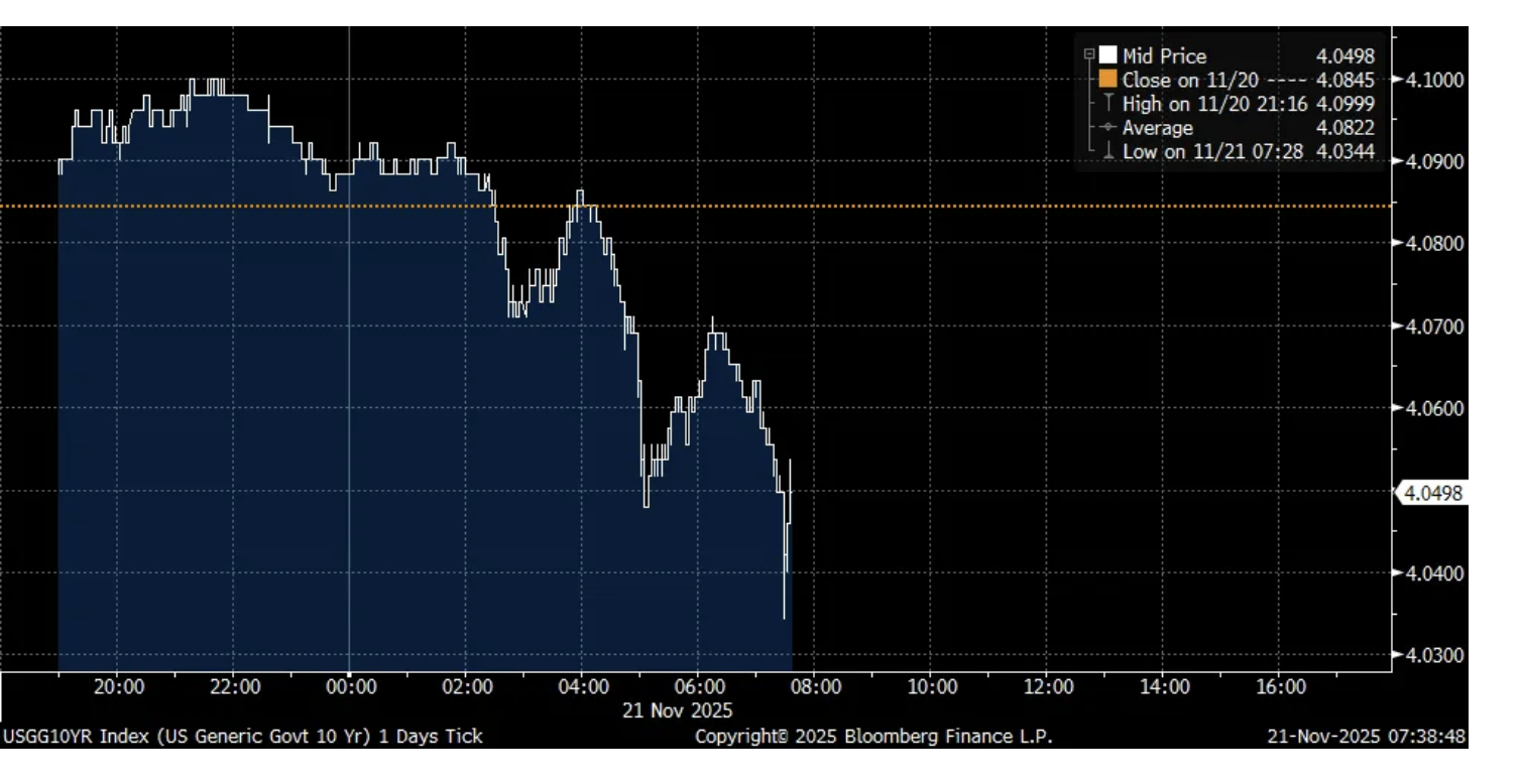 As eyes should be on the Japanese JGB market where yields were lower overnight for the first time in a week with details of their fiscal package now out, October CPI rose 3.1% y/o/y as expected but up from 3% in September. The yen is finally rallying too as the rhetoric from the Finance Minister heated up on its weakness. “We are concerned the current movement is extremely one-sided and abrupt...Regarding excessive volatility and disorderly movements, including speculative trends, we will take appropriate measures as necessary based on the Japan-US Finance Ministers’ Joint Statement” and said it’s “certainly a possibility” they can intervene.