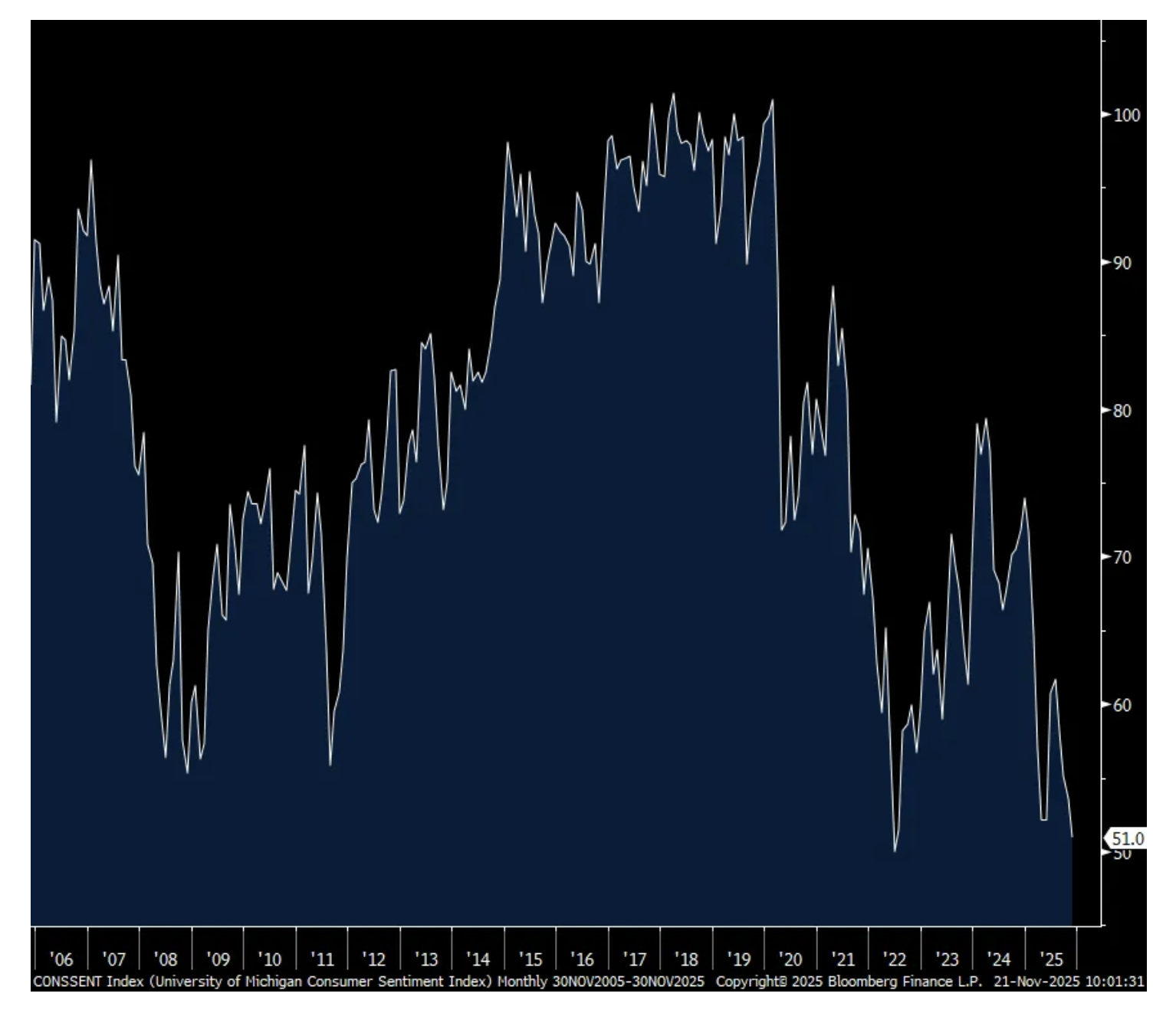 5) The final November UoM Consumer Confidence index was 51, up from the initial read a few weeks ago of 50.3 but down from 53.6 in October and the weakest level since June 2022 which is one of the lowest prints on record. All of the m/o/m decline was seen in the Current Situation which fell 7.5 pts from October. Expectations lifted a touch to 51 from 50.3. One year inflation expectations were 4.5% vs 4.6% last month. The longer term view fell to 3.4% from 3.9%.