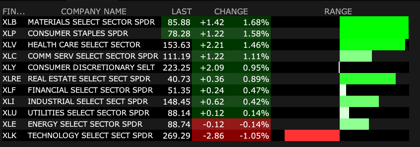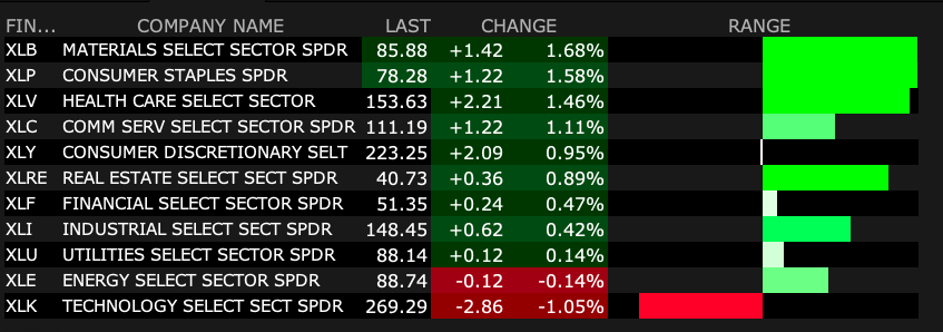 Defensive consumer staples are the world's fair today: (PG) (+$3), (KO) (+$1.75), (PEP) (+$1.05), (KMB) ($1.40).