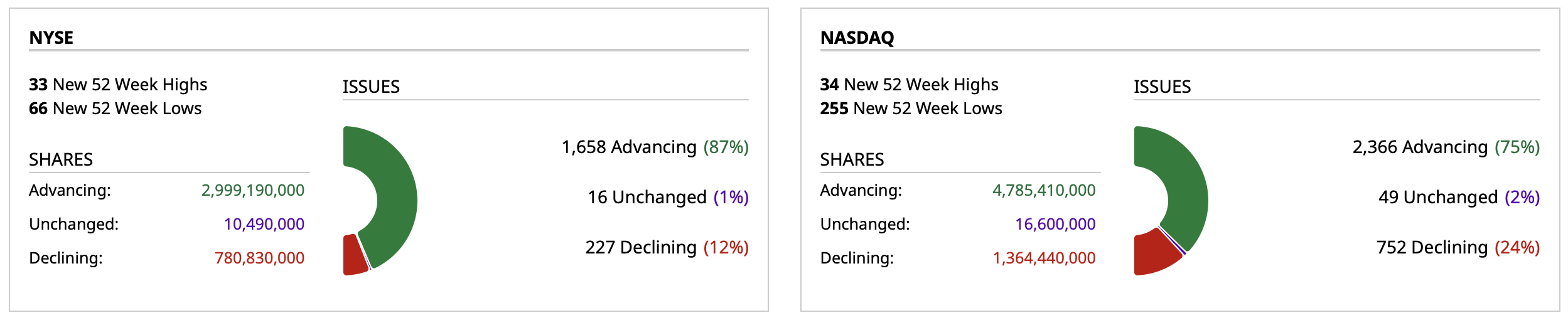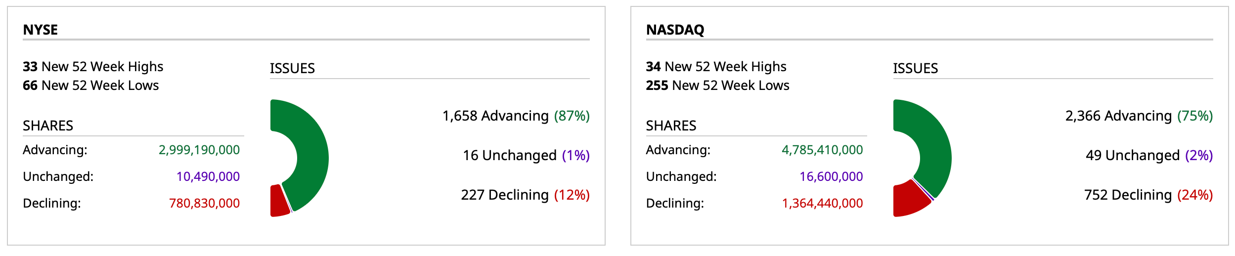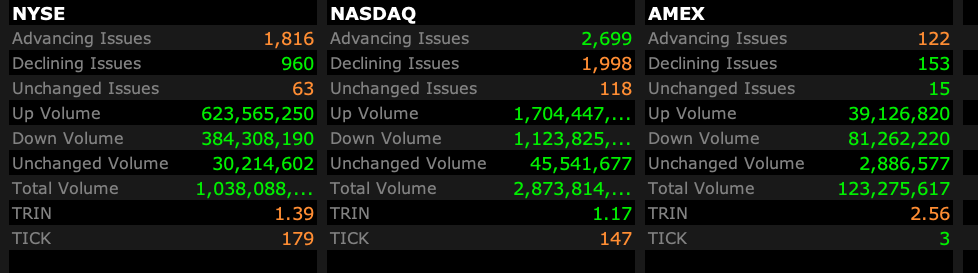 - NASDAQ volume 3% below its one-month average;