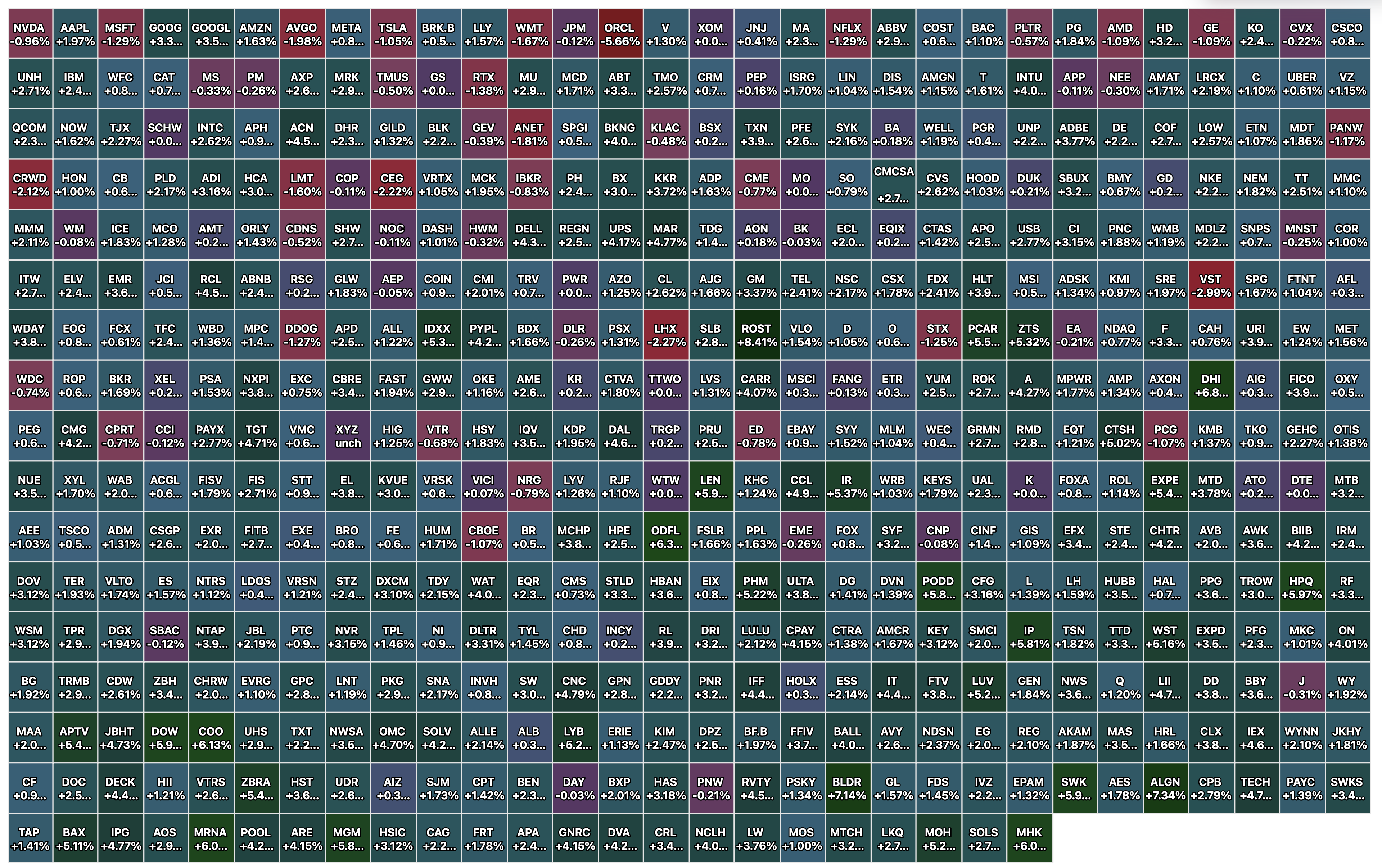 Friday's Closing S&P 500 Heat Map