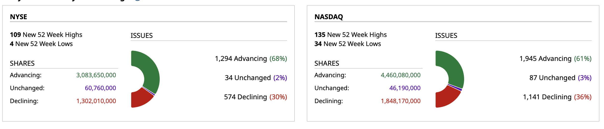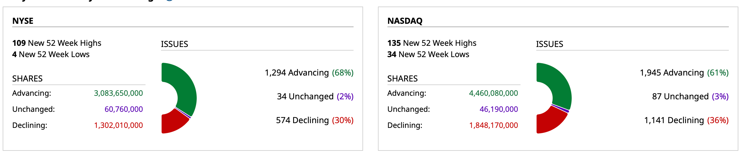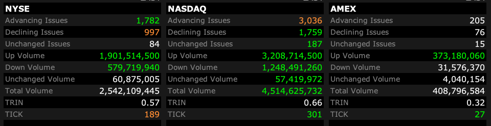 - NASDAQ volume 41% below its one-month average
