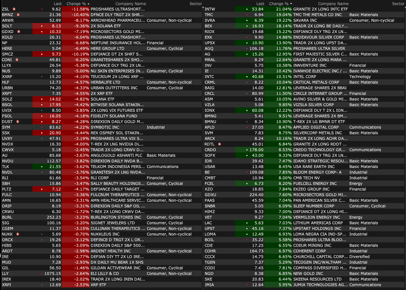 -VUZI +6.7% (received and fulfilled a series of follow-on volume orders in Q4 of 2025 for custom M400 smart glasses kits totaling nearly $1M)