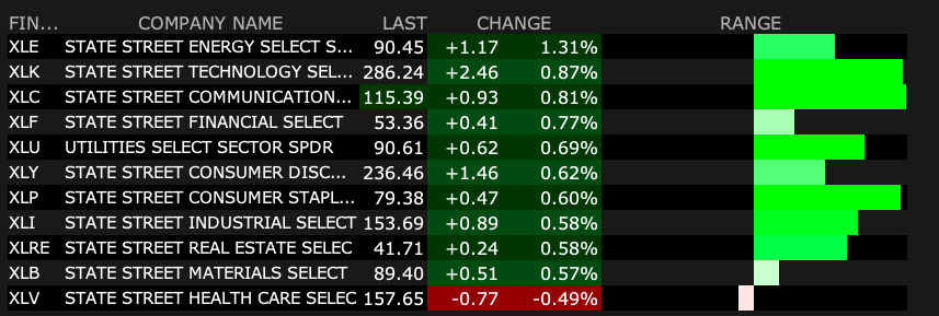 - VIX index: down 2.38% to 16.80 Breadth