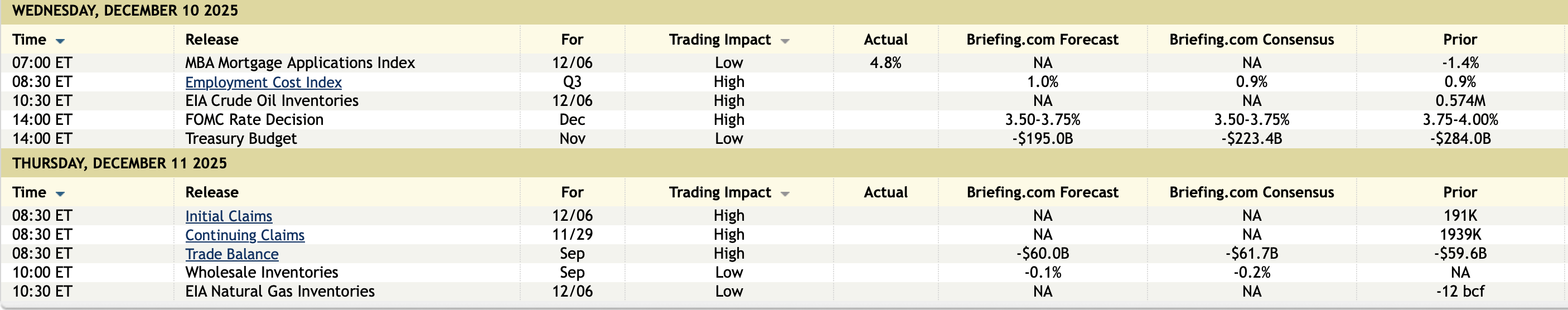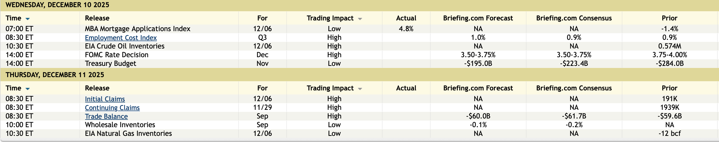 With respect to the dots, the REAL rate long term expectation remained at 1% and they are now slightly below that. They tweaked down by one tenth their 2025 inflation forecast to 2.9% headline and 3% core vs 2.8% for each seen for September’s data. With next year, the dots only show one more cut to a median of 3.4%, coincident with their 2.4% PCE forecast headline and 2.5% core, thus holding to the 1% REAL rate. They also raised their 2026 GDP forecast to 2.3% while keeping their unemployment rate estimate at 4.4%.