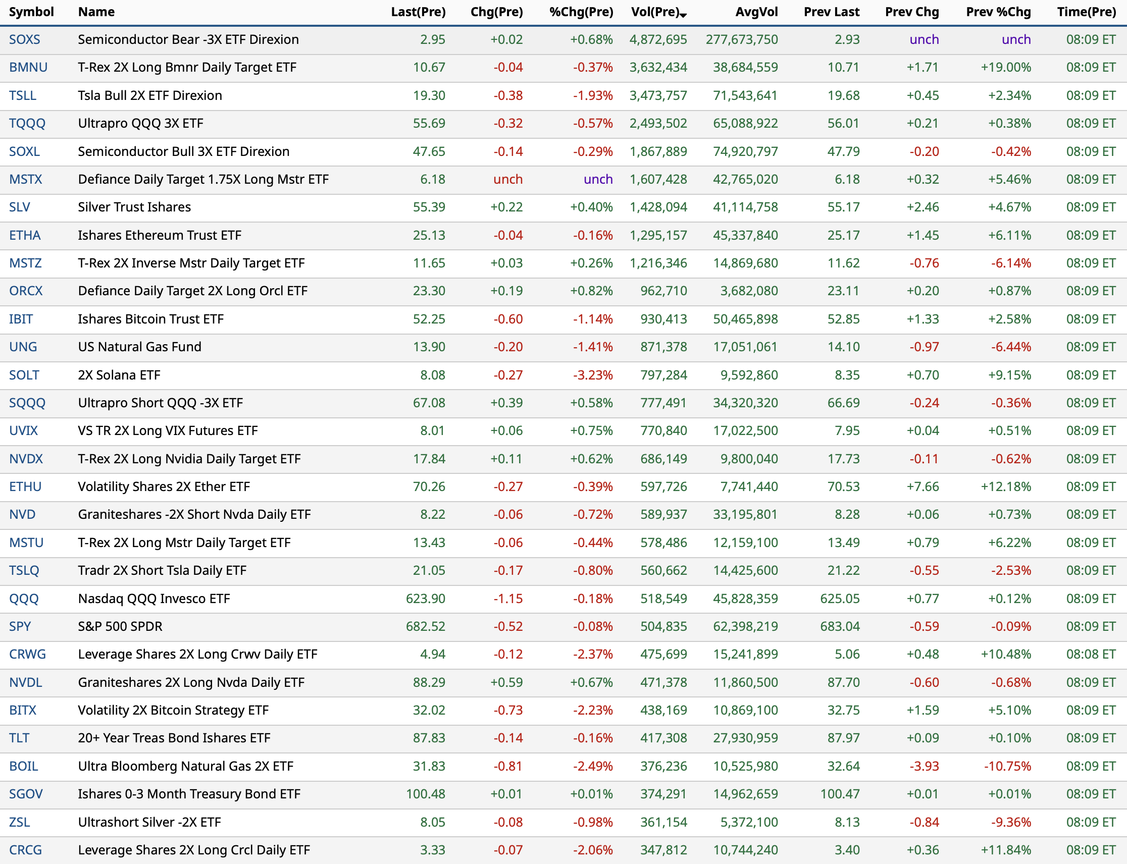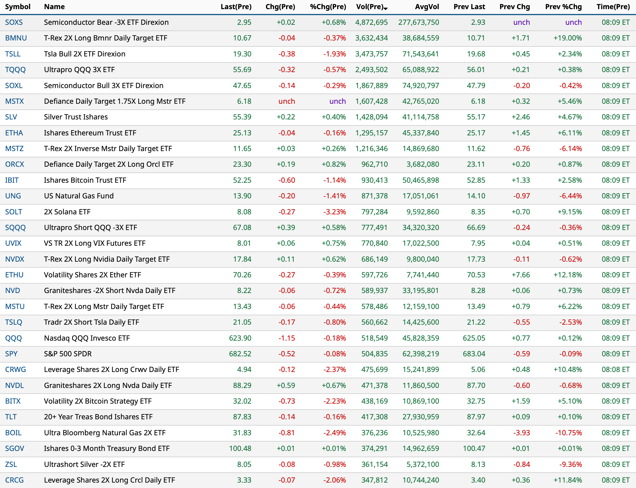 - NYSE volume 2% below its one-month average;