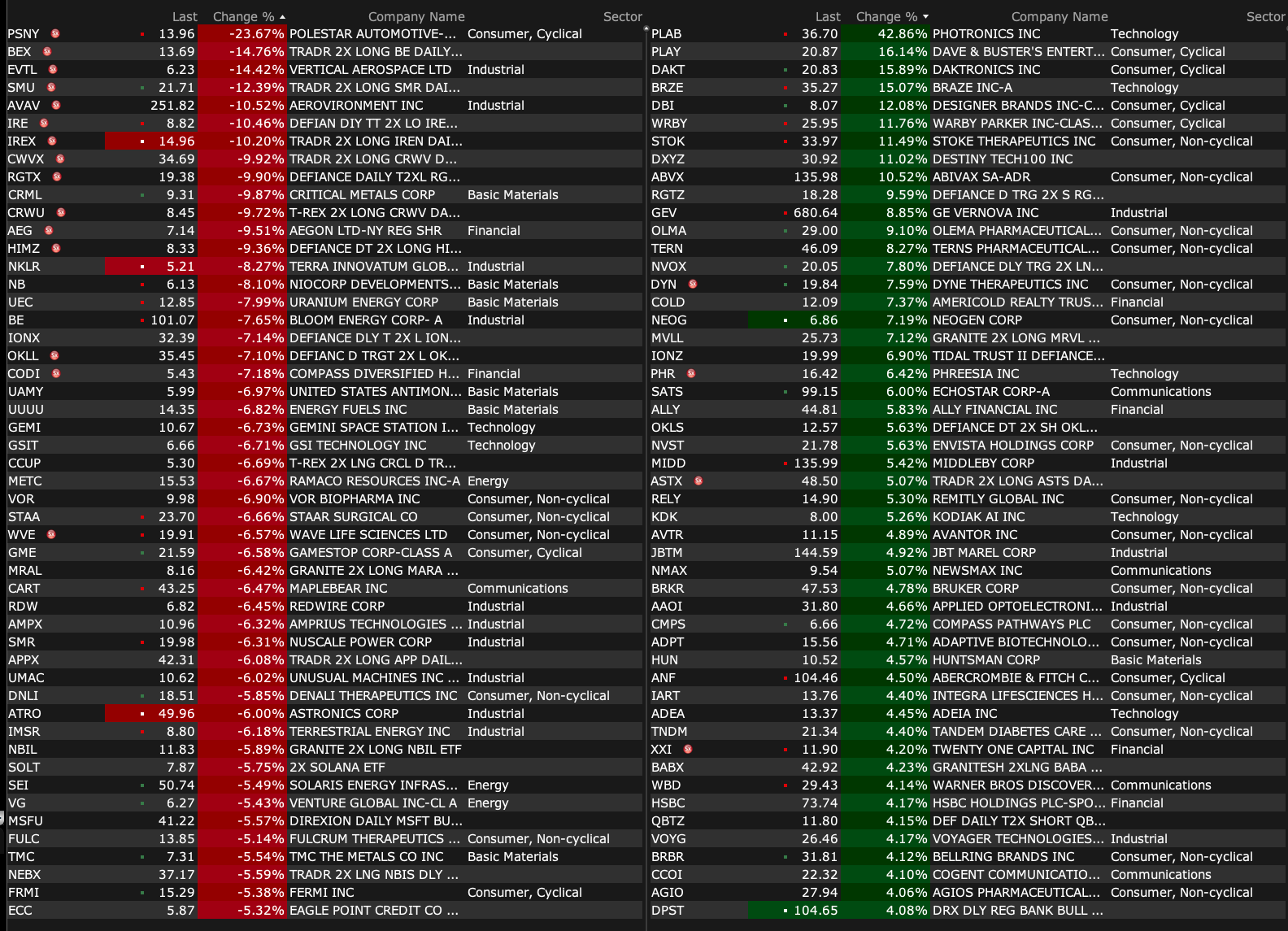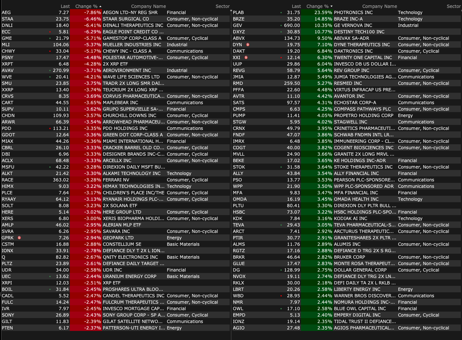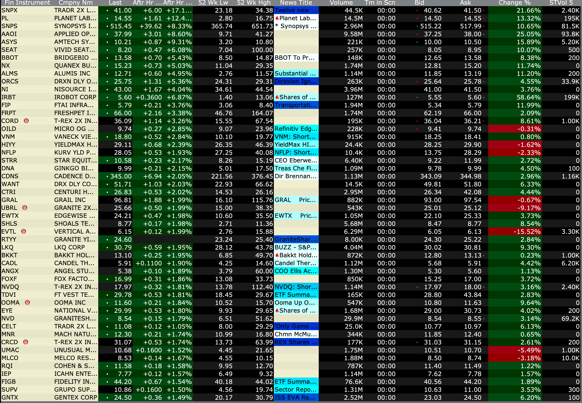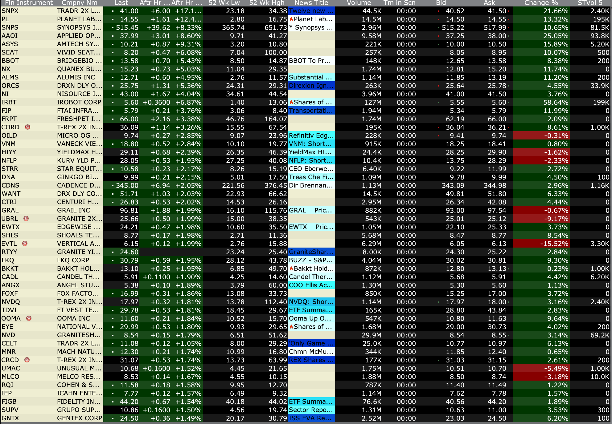 After-Hours Gainers and Losers