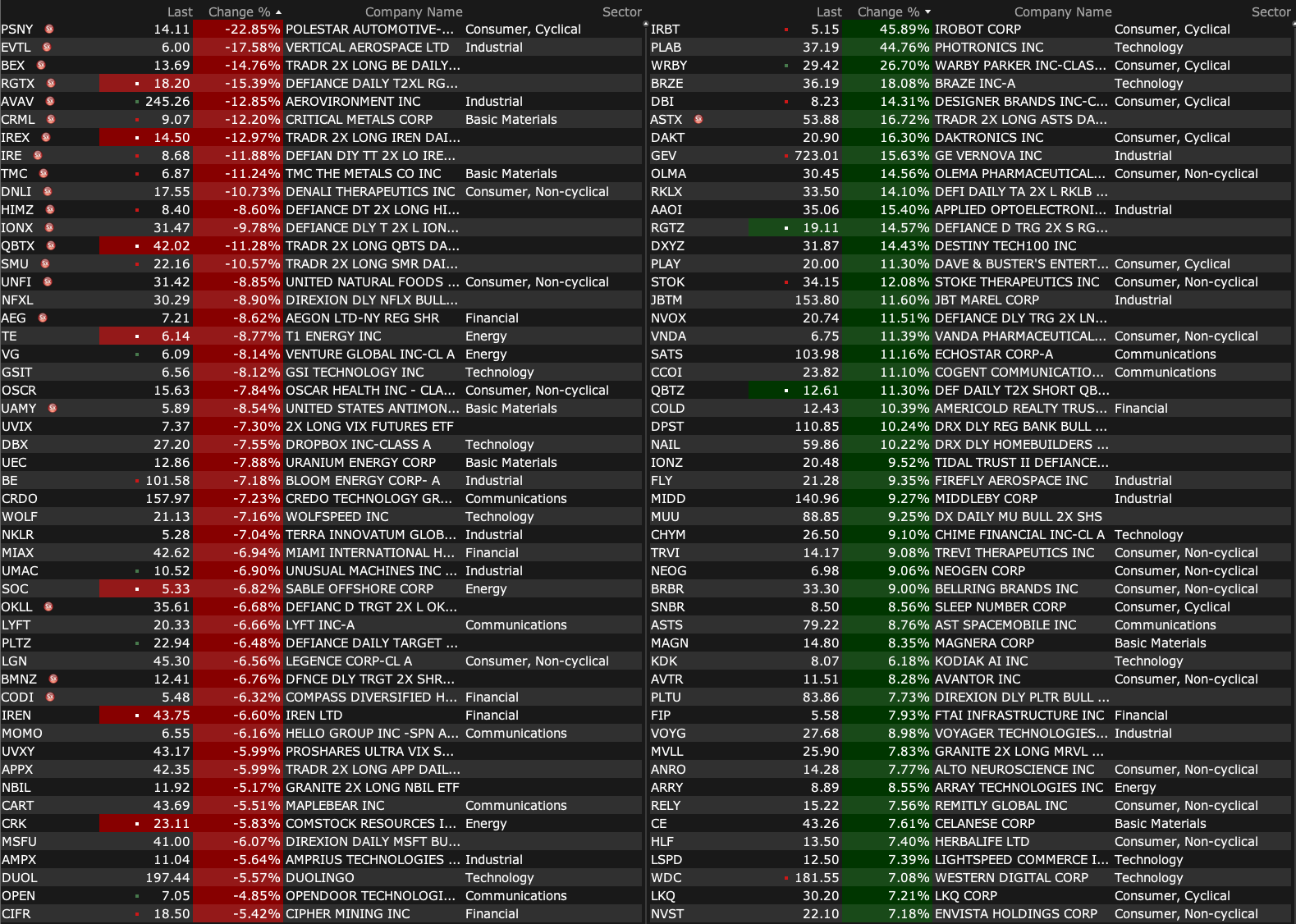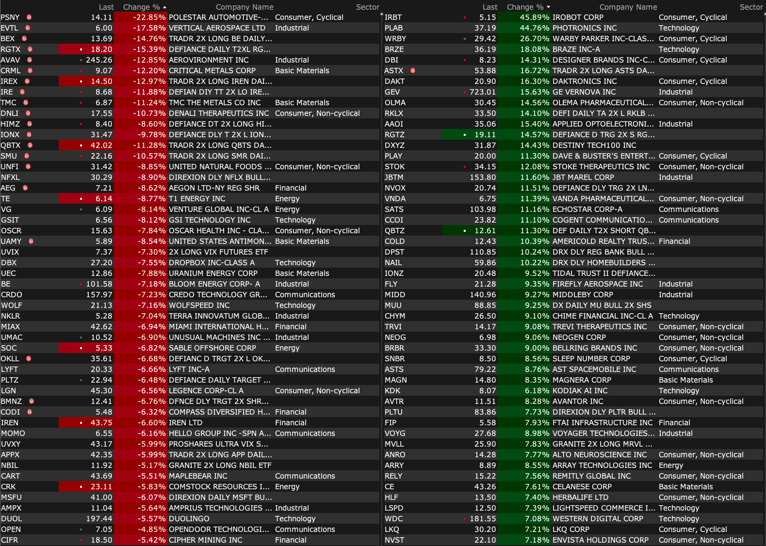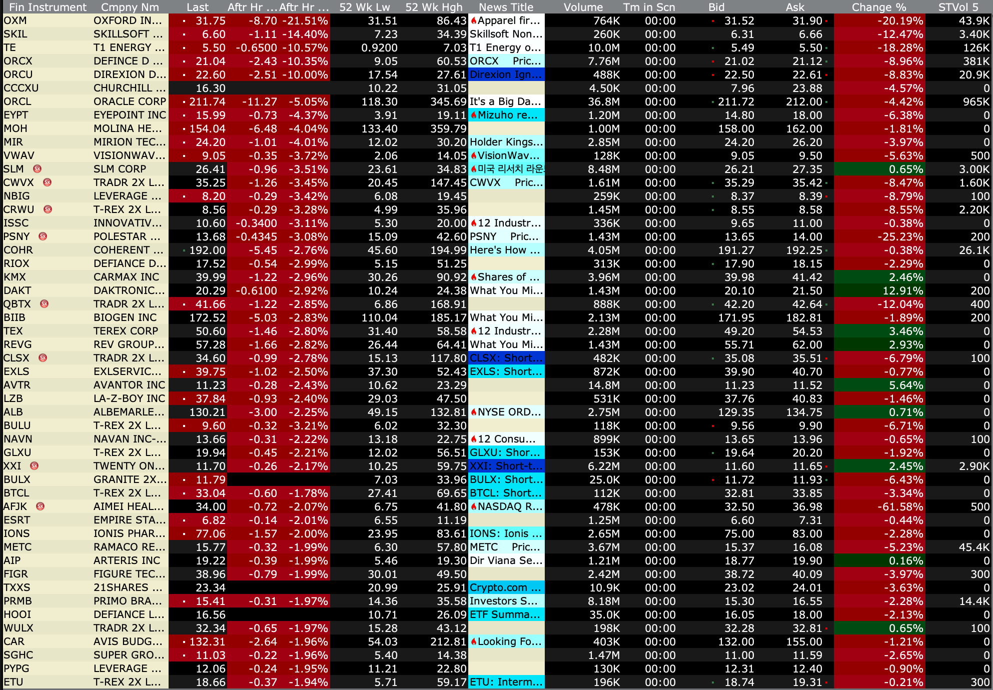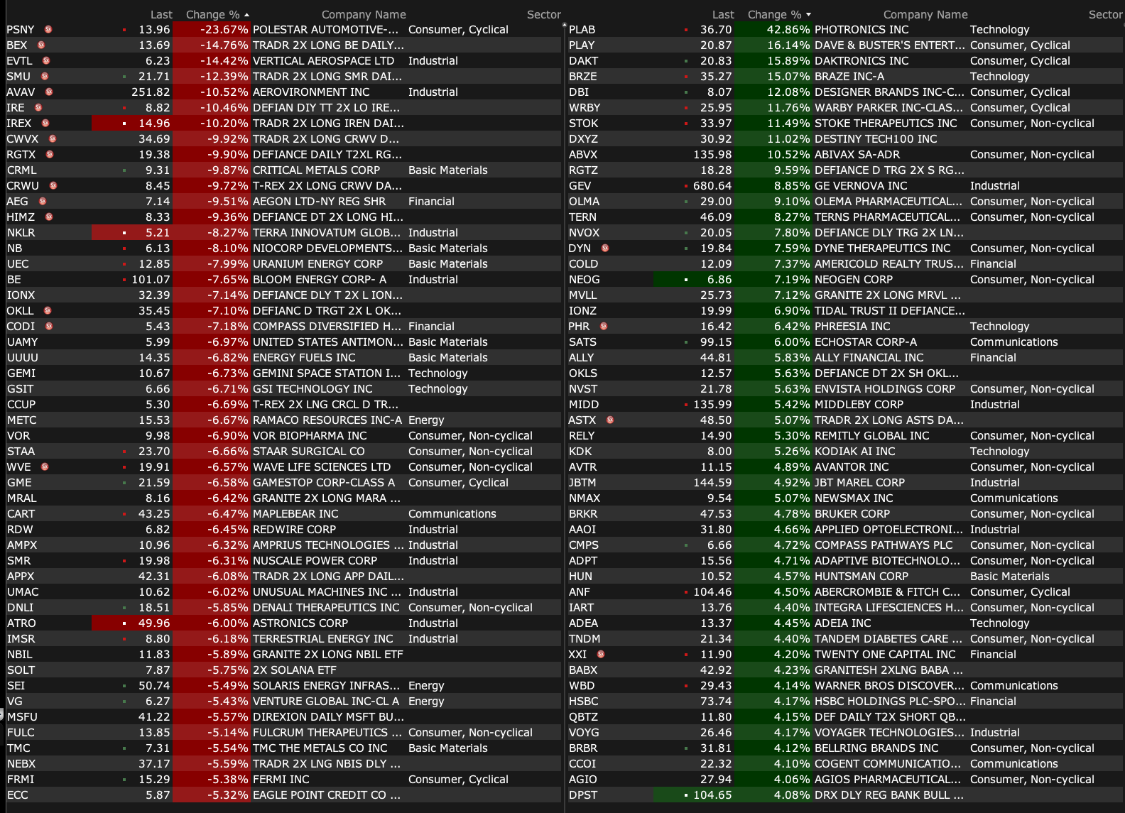 After-Hours Gainers and Losers