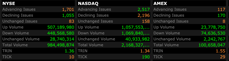 Yesterday's foul breadth continued the pattern of the last several days.