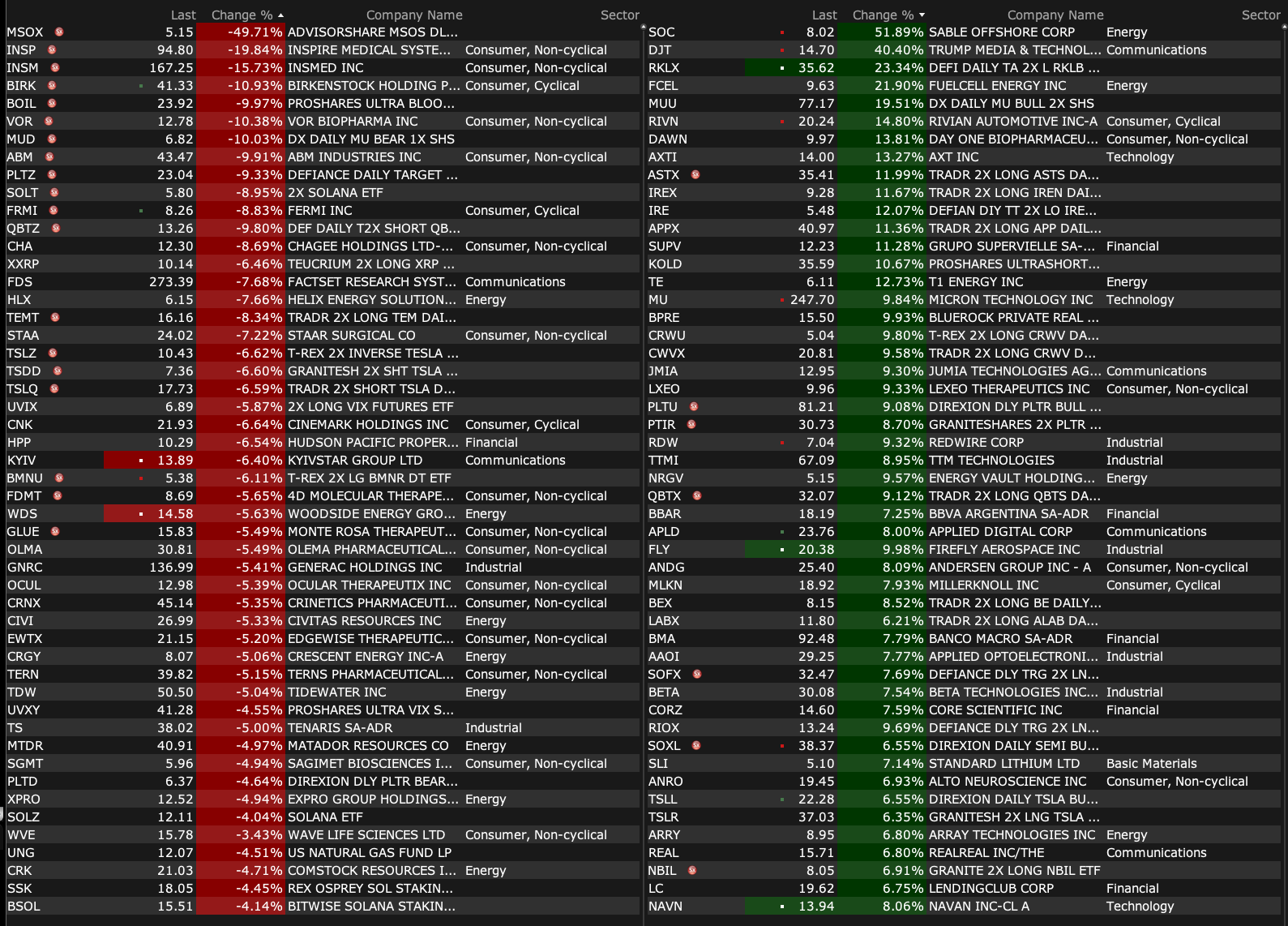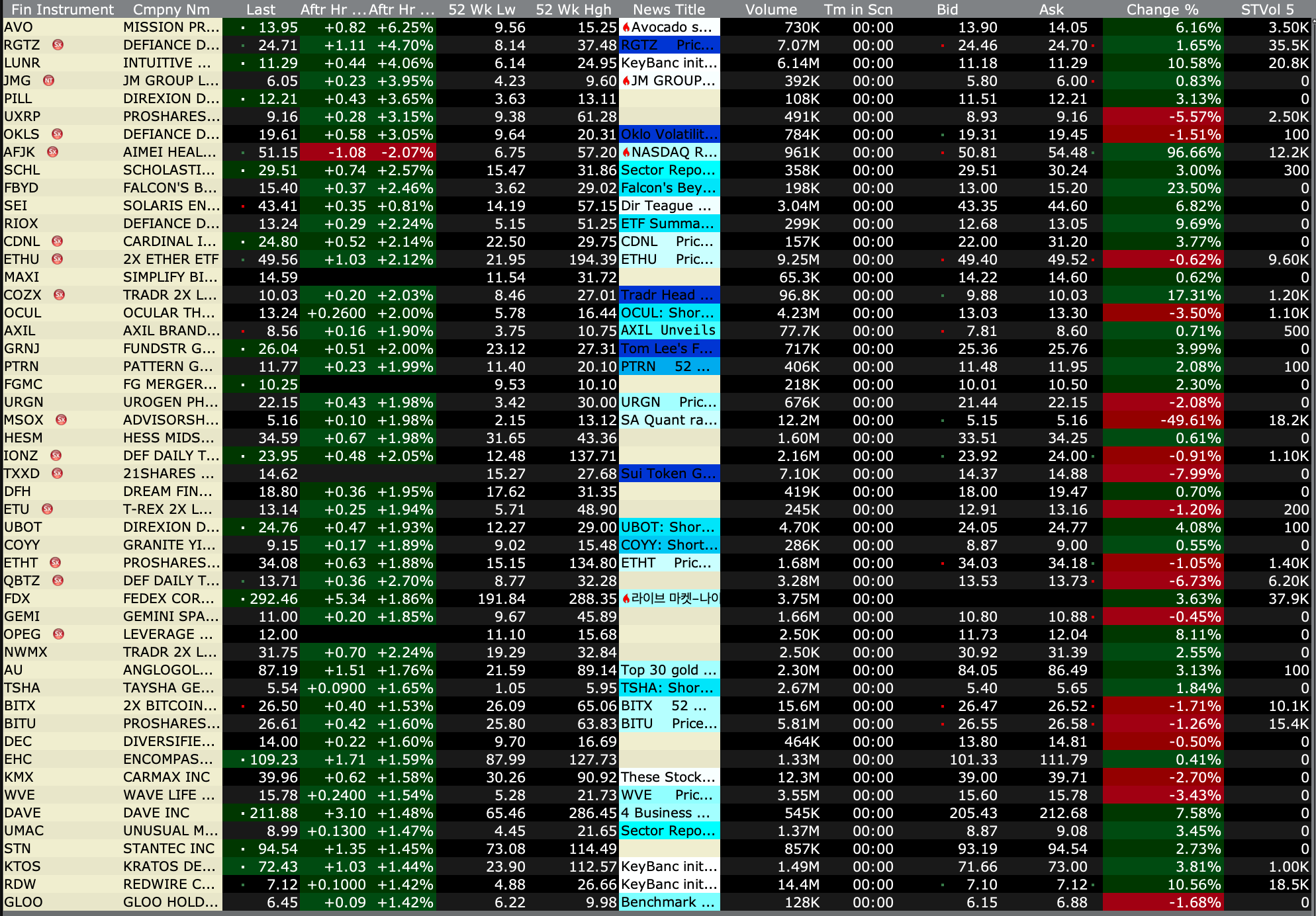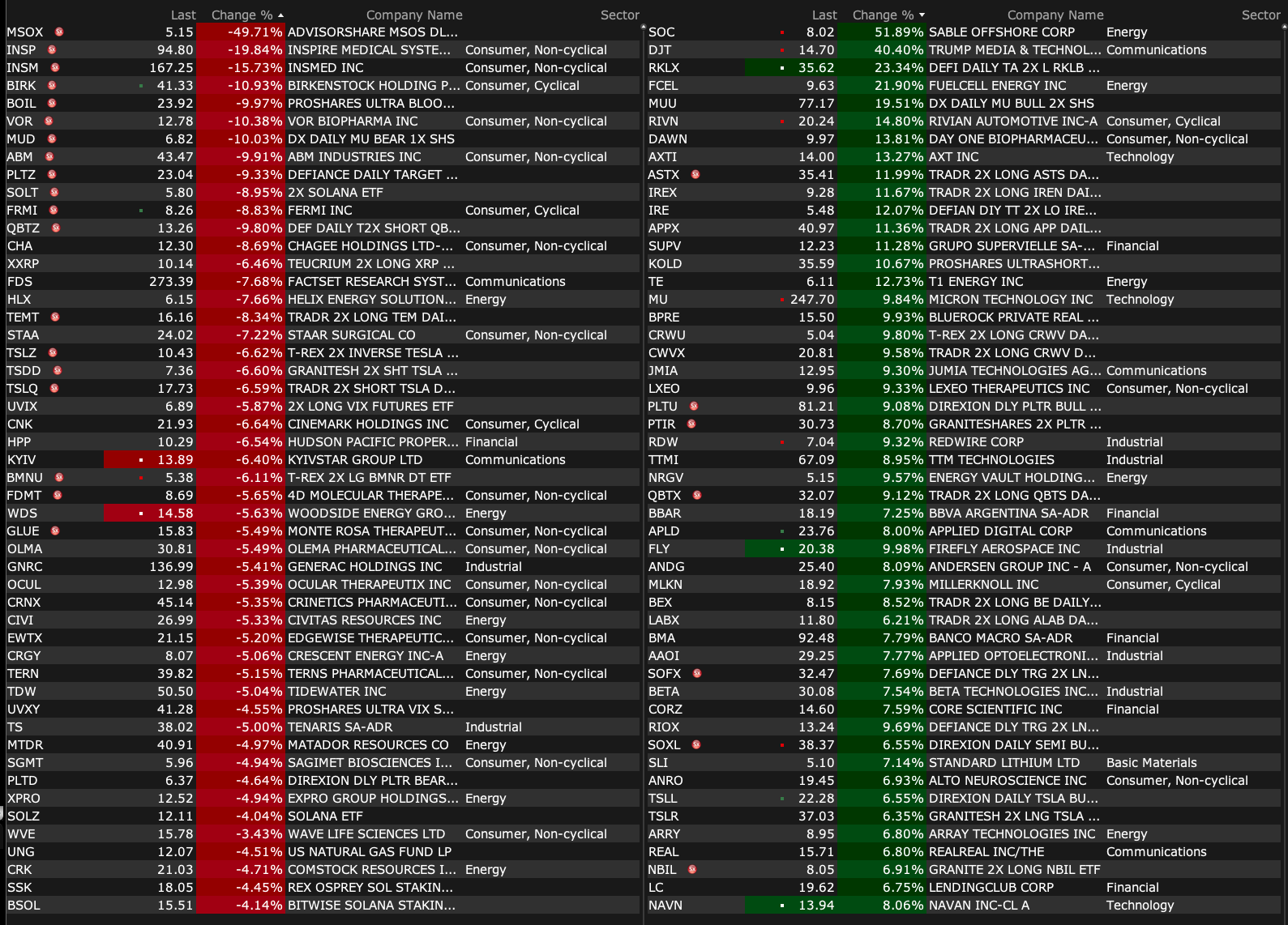 After-Hours Gainers, Losers