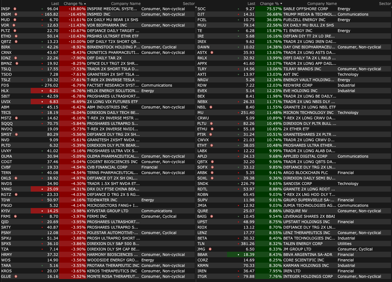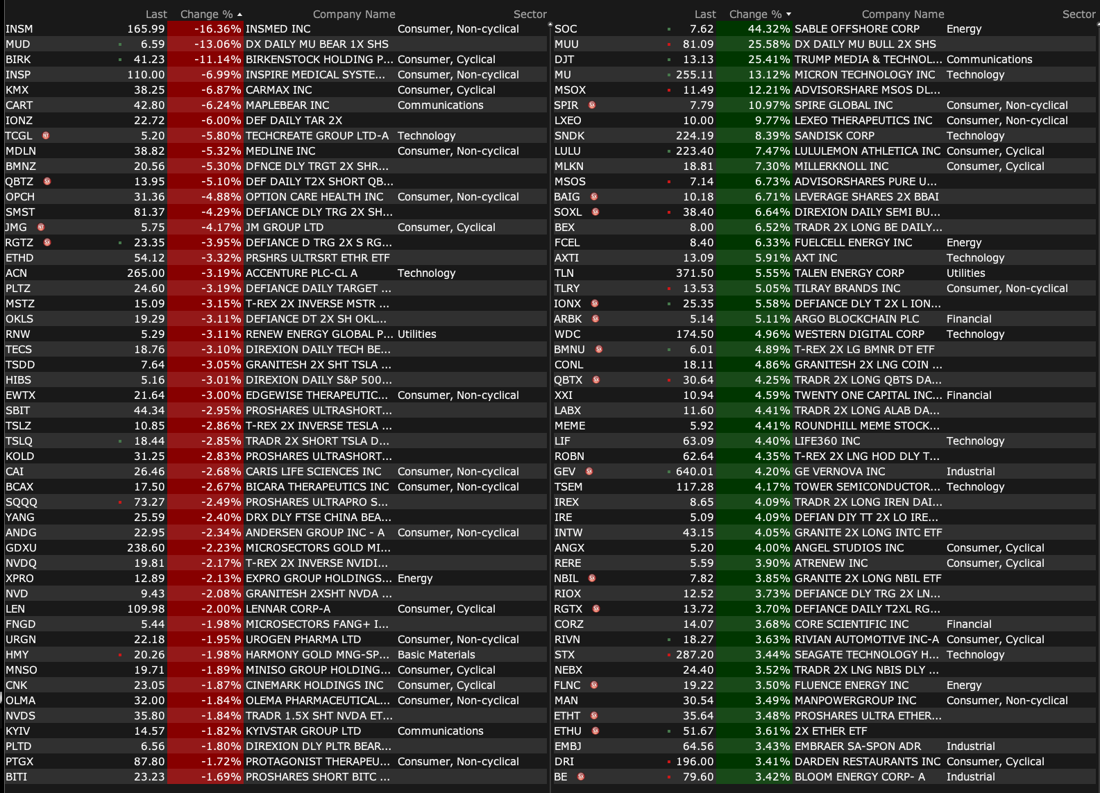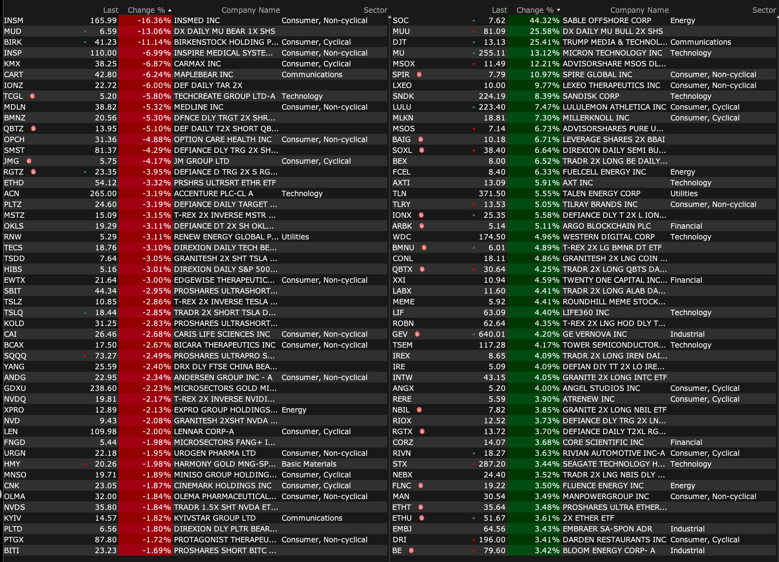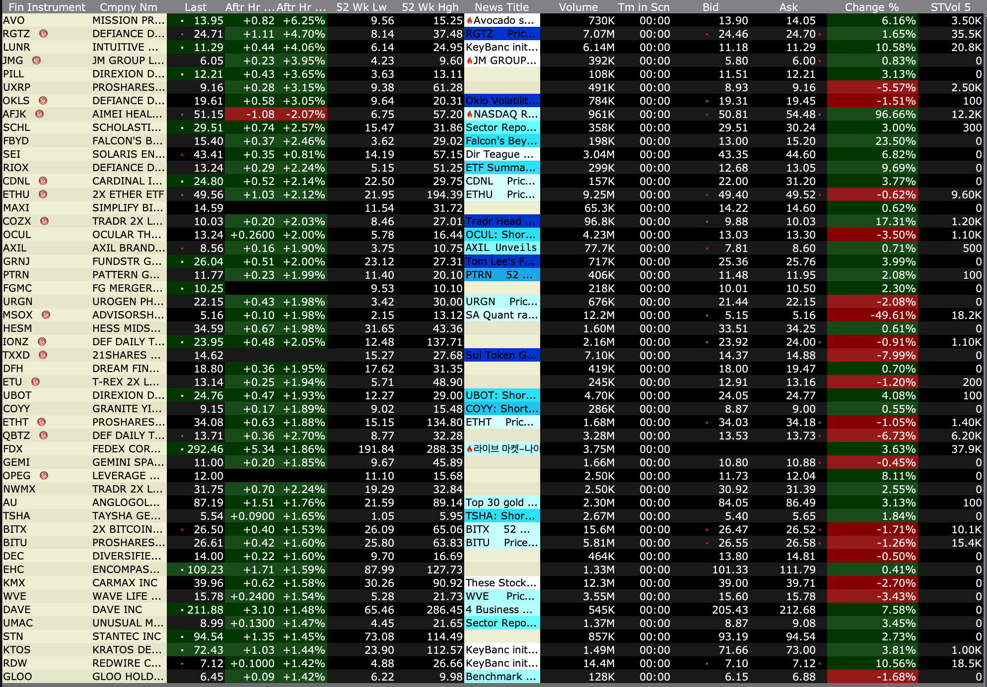 After-Hours Gainers, Losers