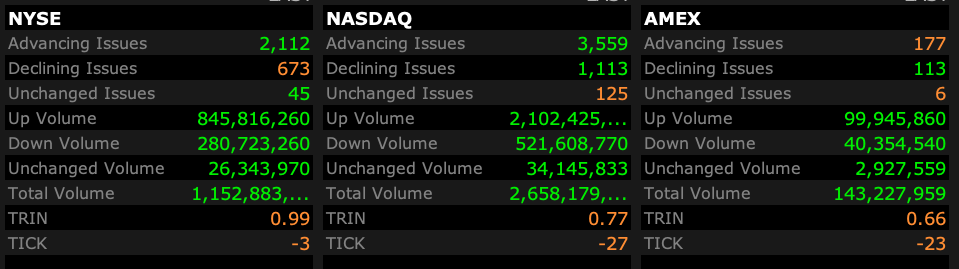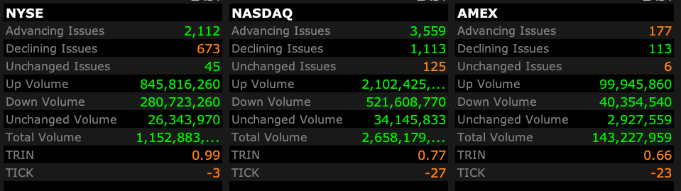 - NASDAQ volume 7% below its one-month average
