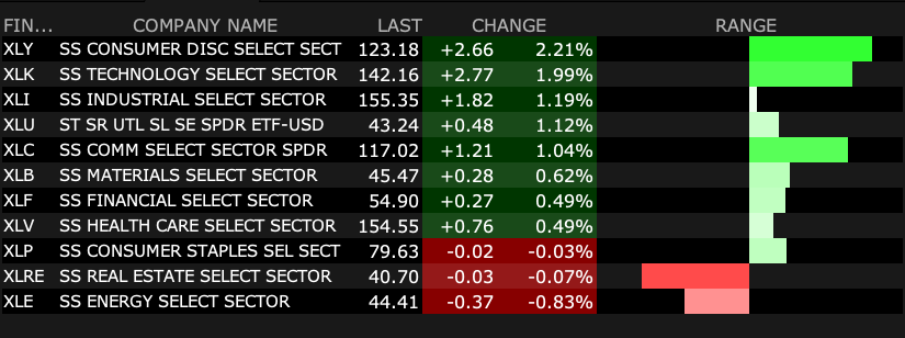 - VIX index: down 4.26% to 16.87