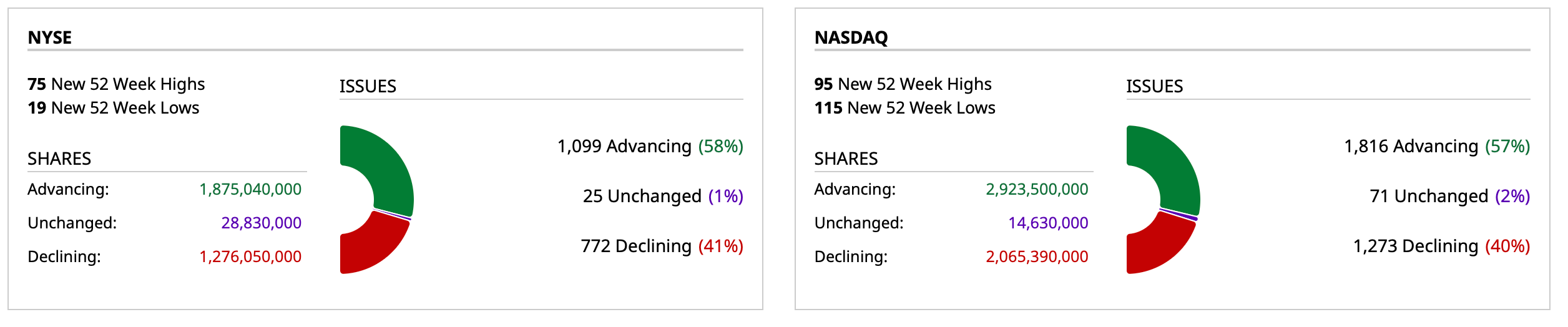 - NYSE volume 5% below its one-month average