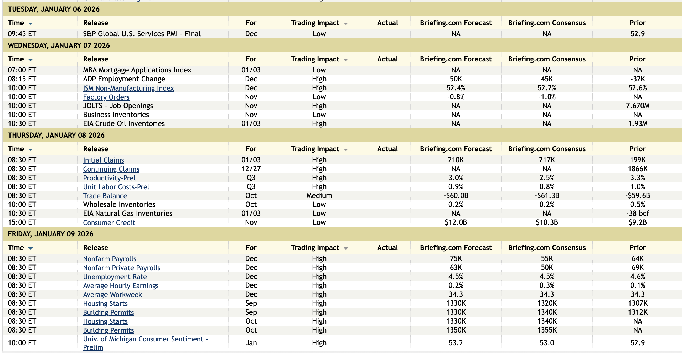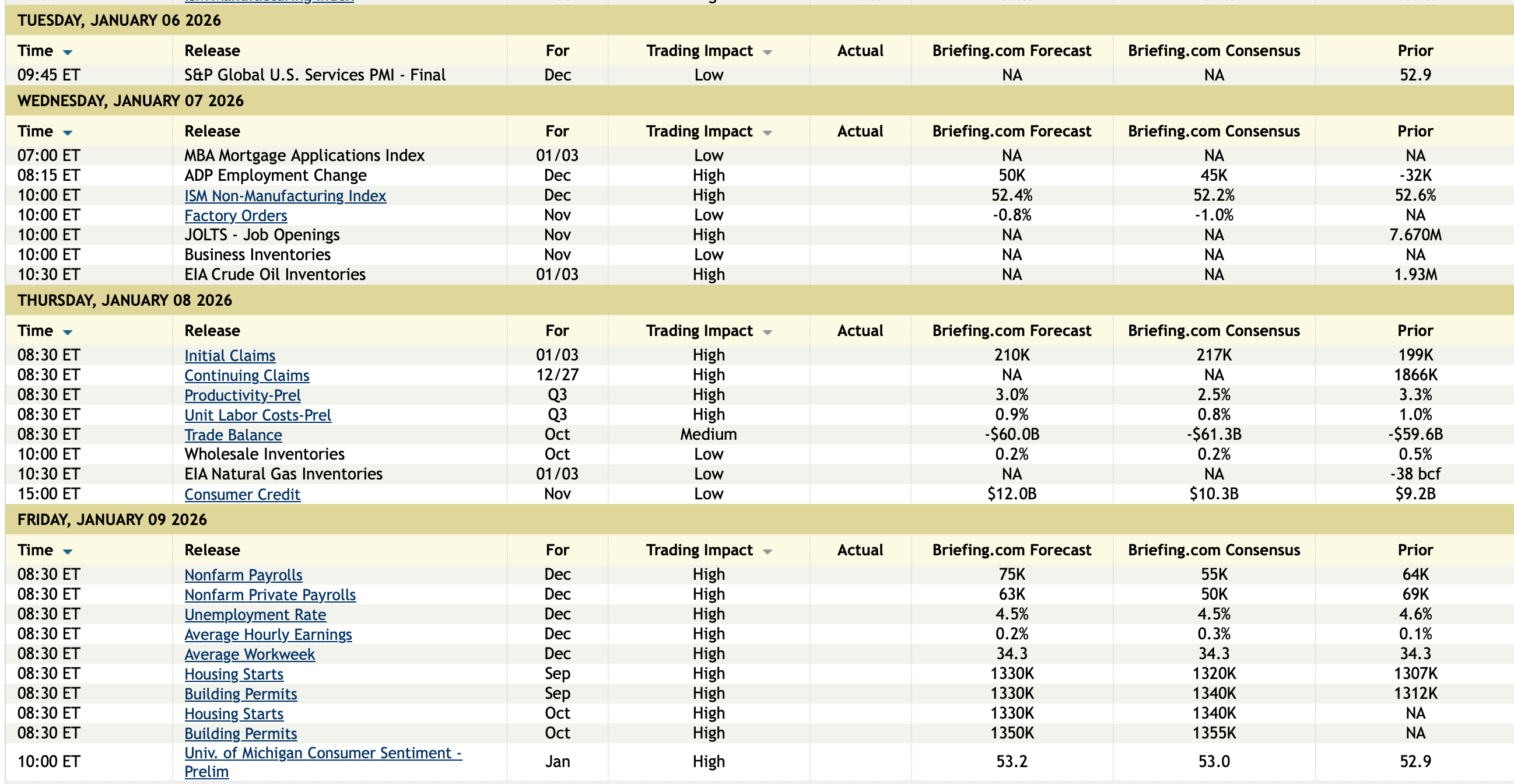 Economic Calendar