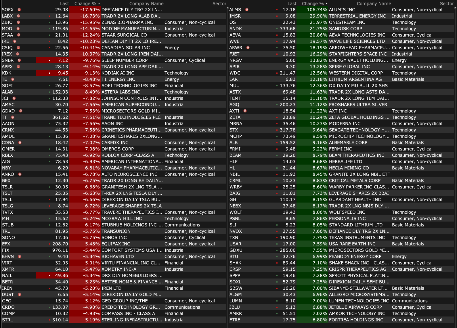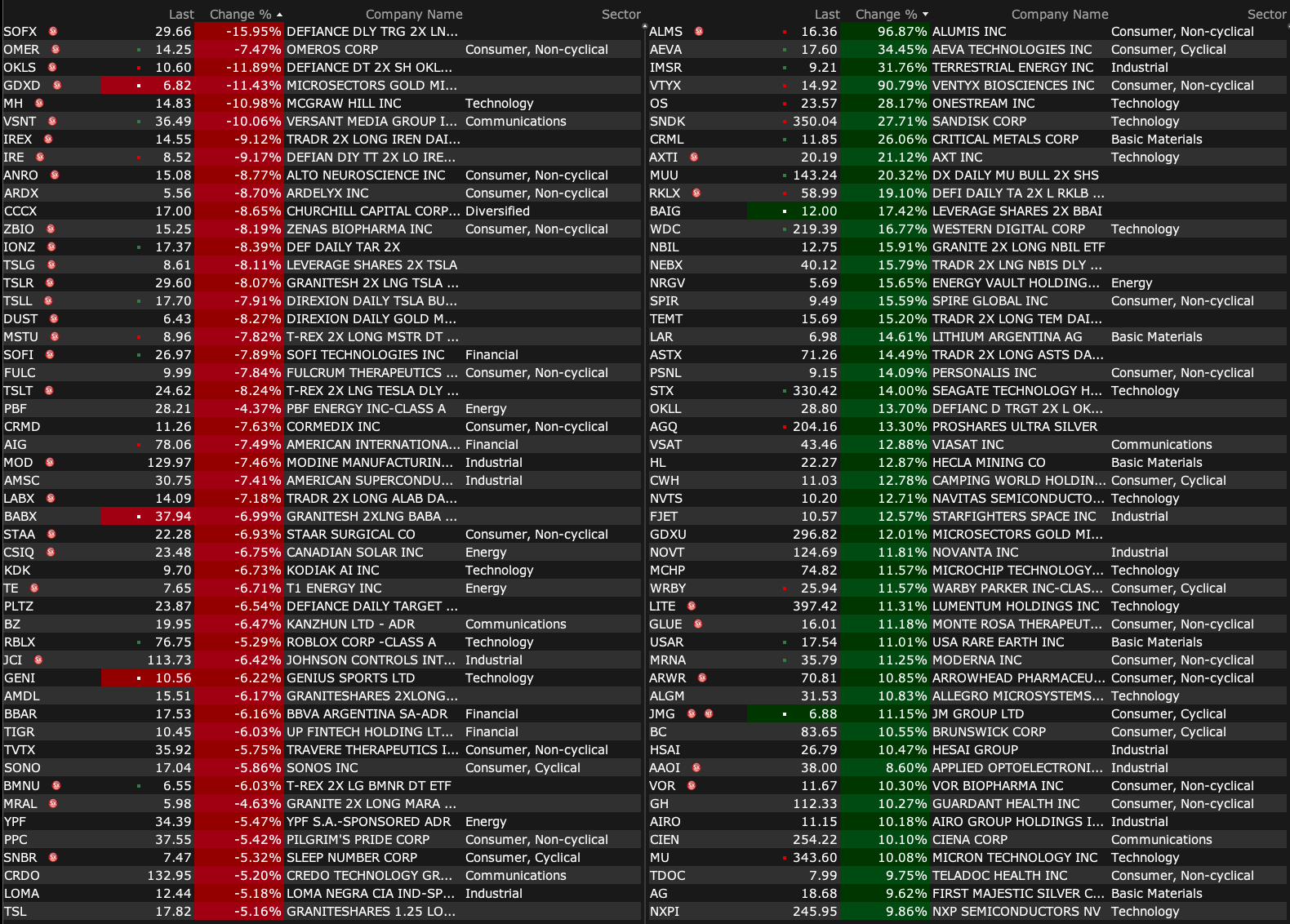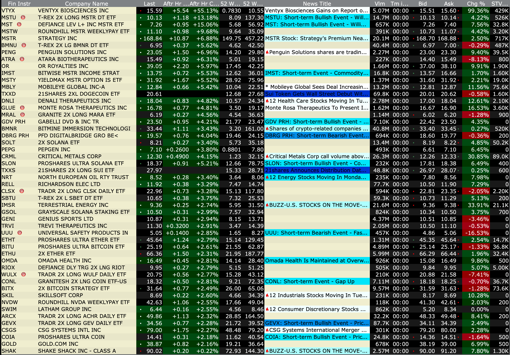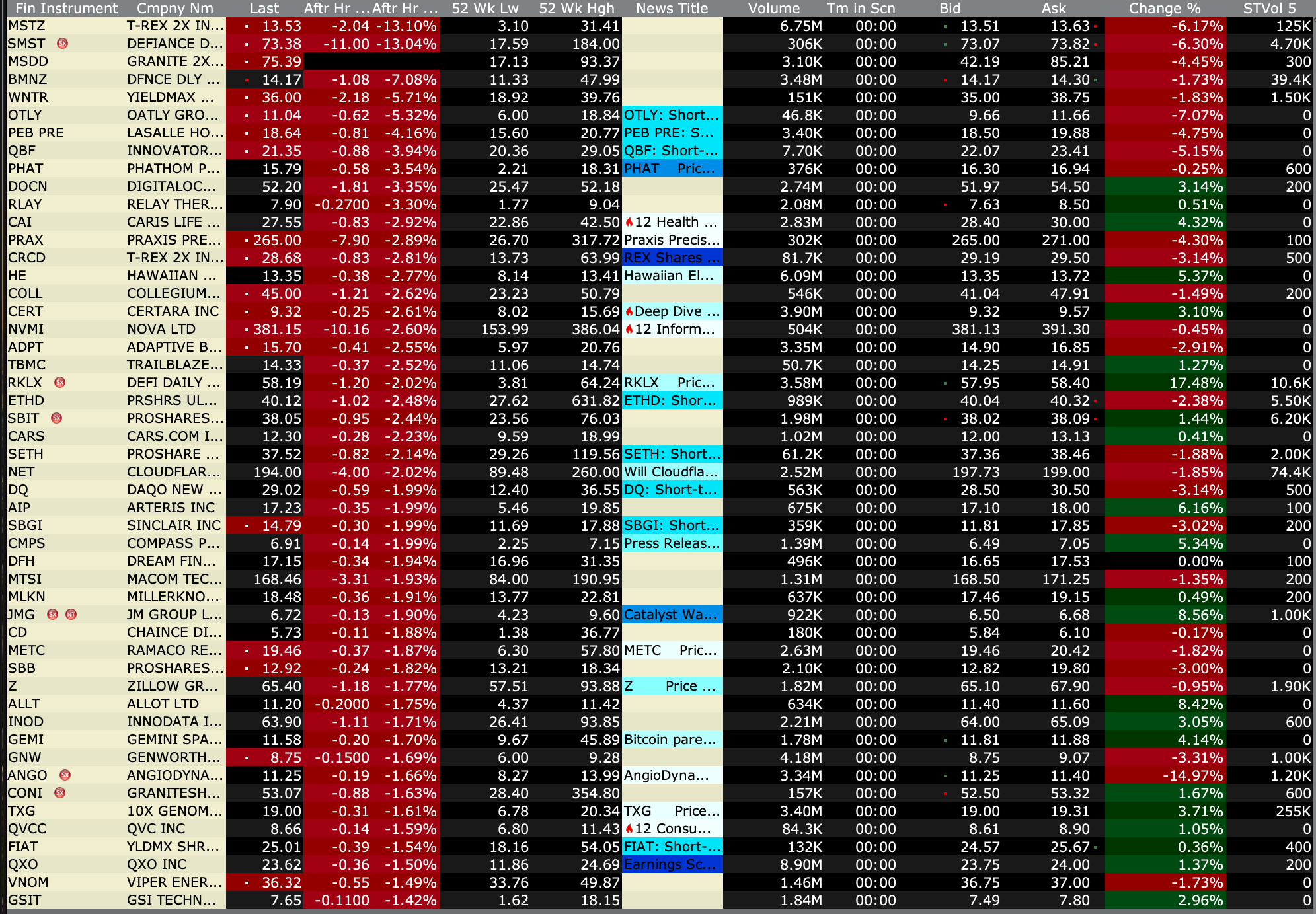After-Hours Gainers, Losers