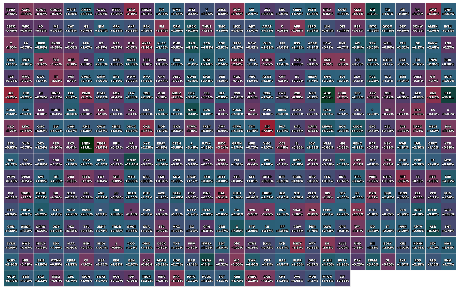 -AIG -4.6% (appoints Eric Andersen as CEO, effective mid-2026; Peter Zaffino has informed the AIG Board of Directors that he intends to transition to Executive Chair of AIG and retire as CEO)