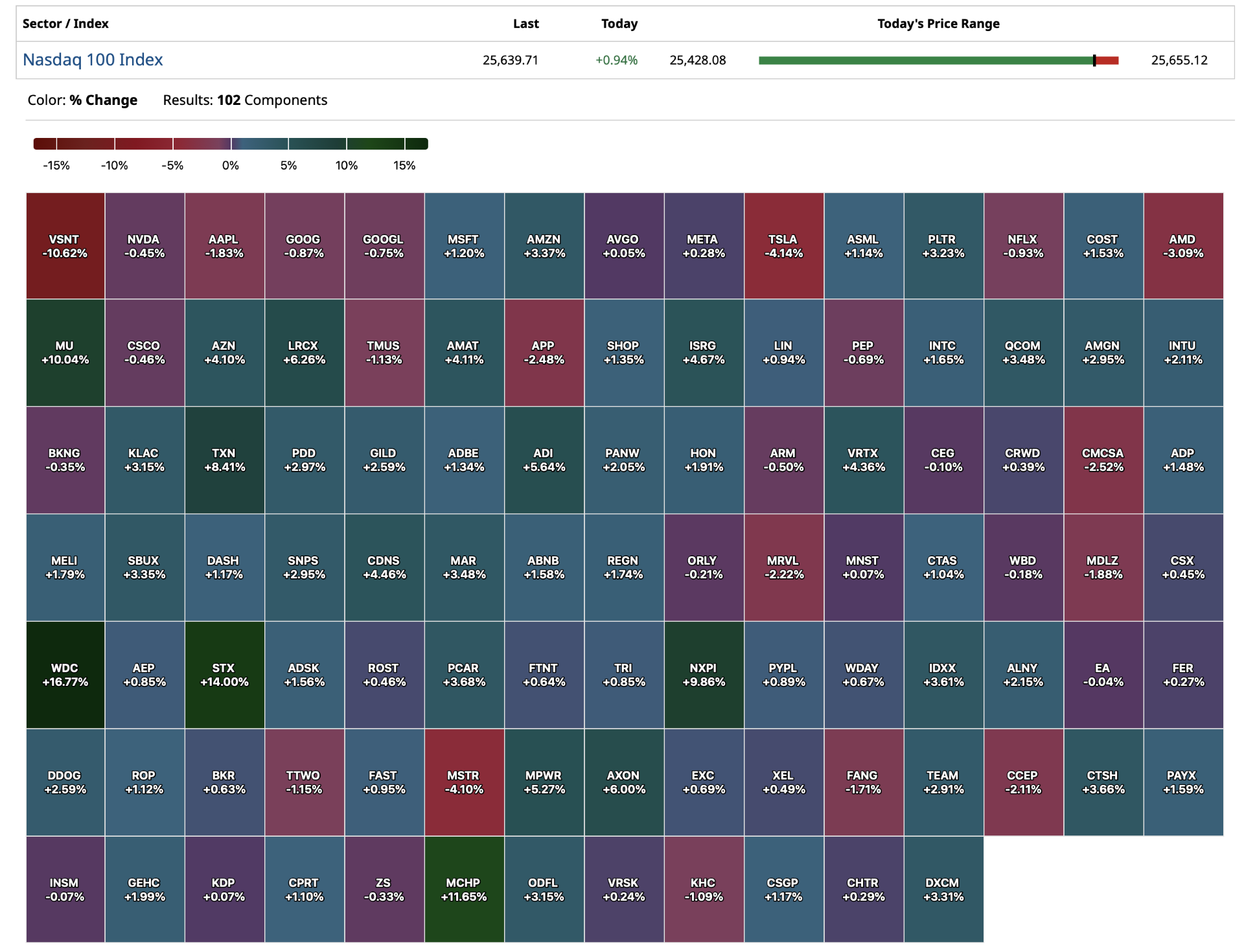 - VIX index: up 0.47% to 14.97