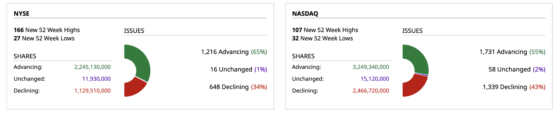 - Nasdaq volume 13% above its one-month average;