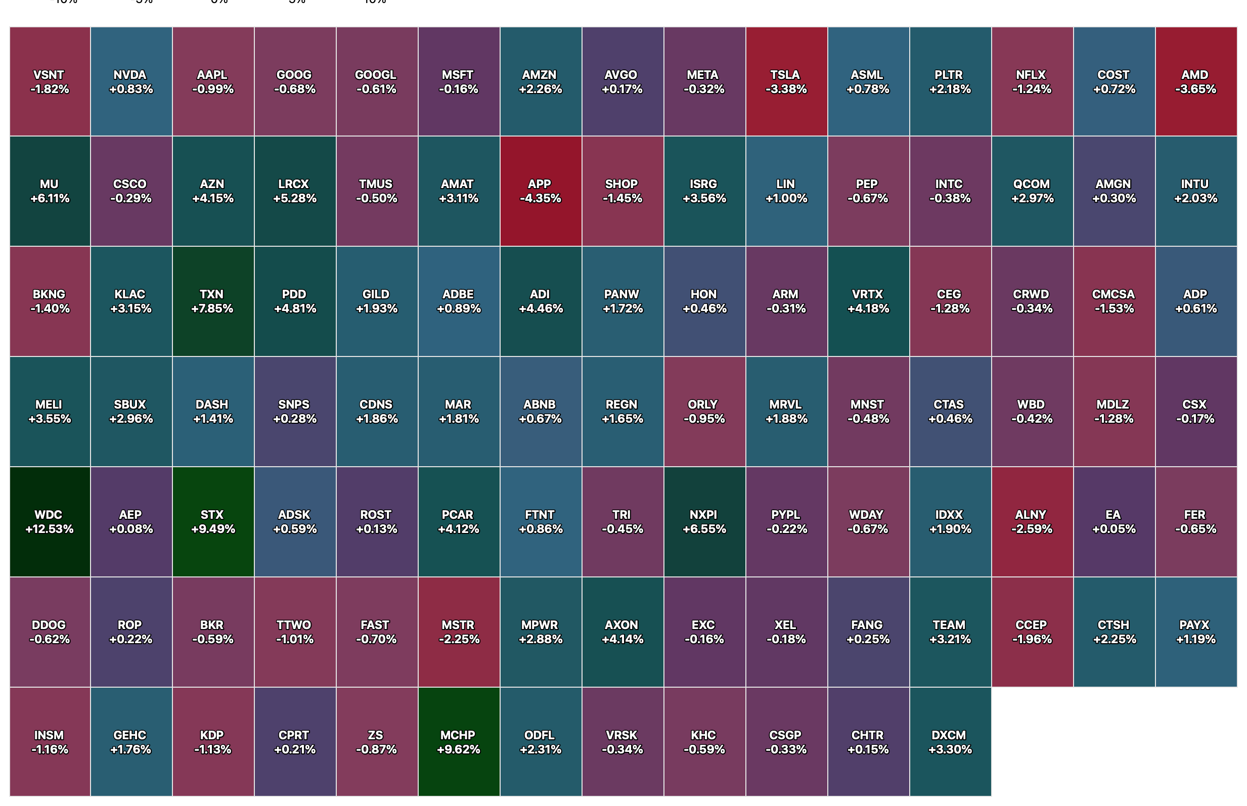 - VIX index: down 1.07% to 14.74
