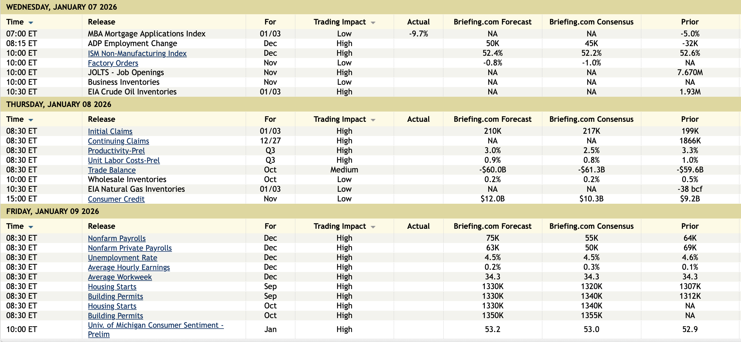 Feroli’s full NFP preview is here. He sees 75k jobs being added, above the Street’s estimate of 59k; November printed 64k jobs. For the unemployment rate (U.3) he sees 4.6%, above the Street’s estimate; prior print was 4.564% (rounds to 4.6%). For Average Hourly Earnings, he sees +0.3% MoM and +3.6% YoY.
