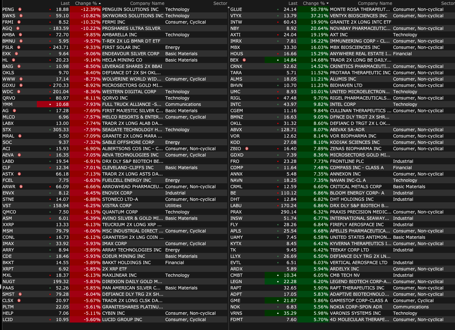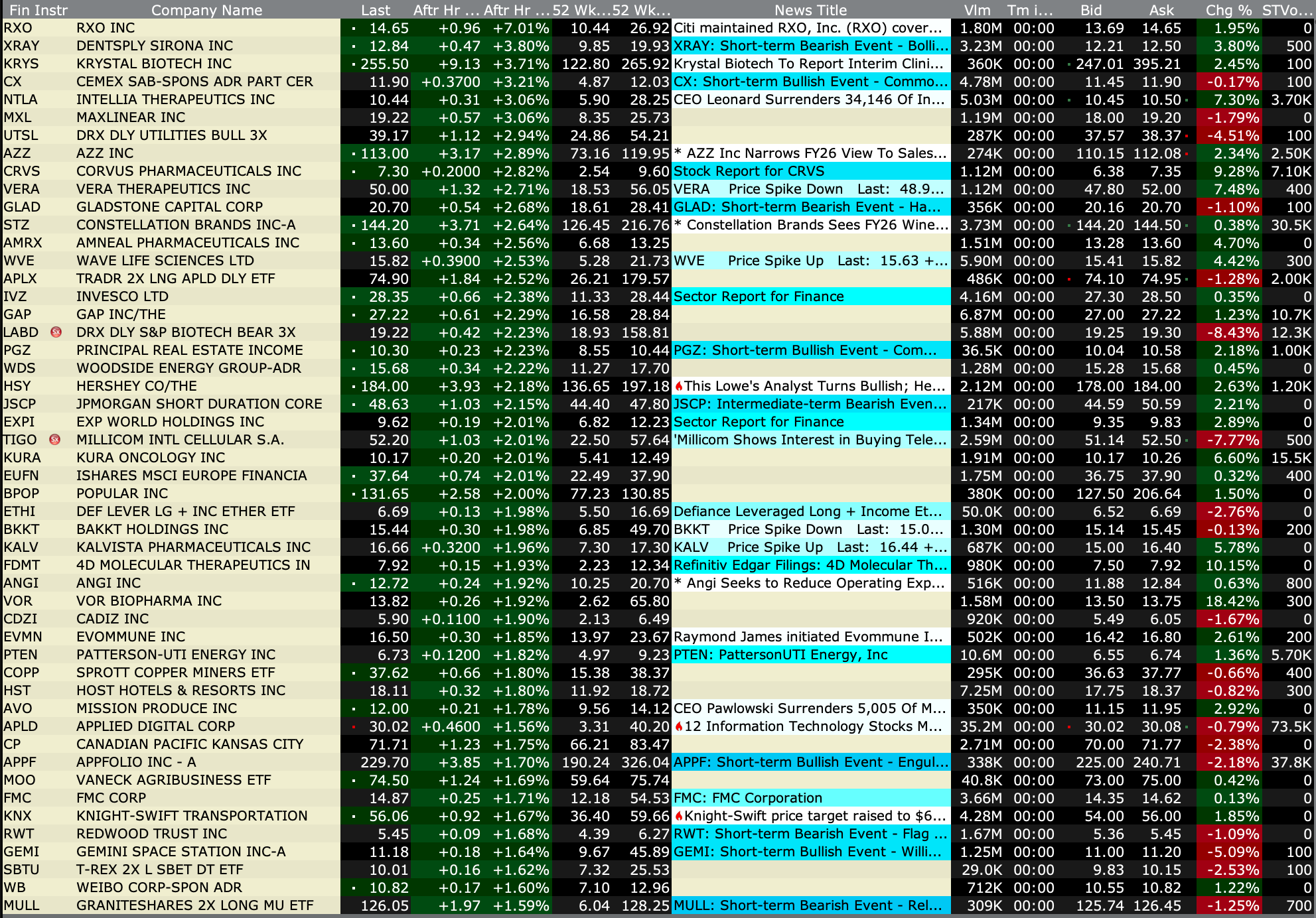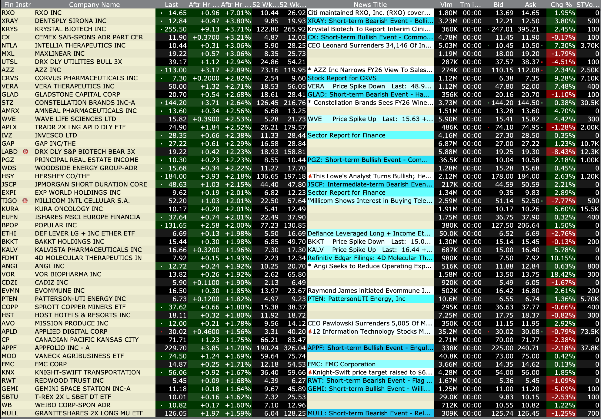 -VTYX +56% (momentum as reportedly company nears deal to be acquired by Eli Lilly for over $1B)