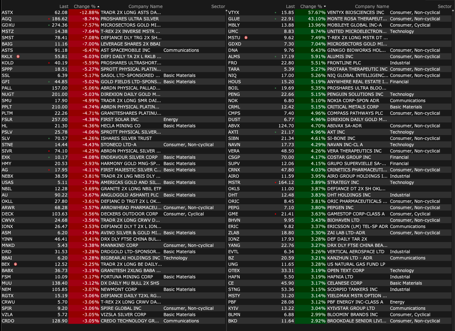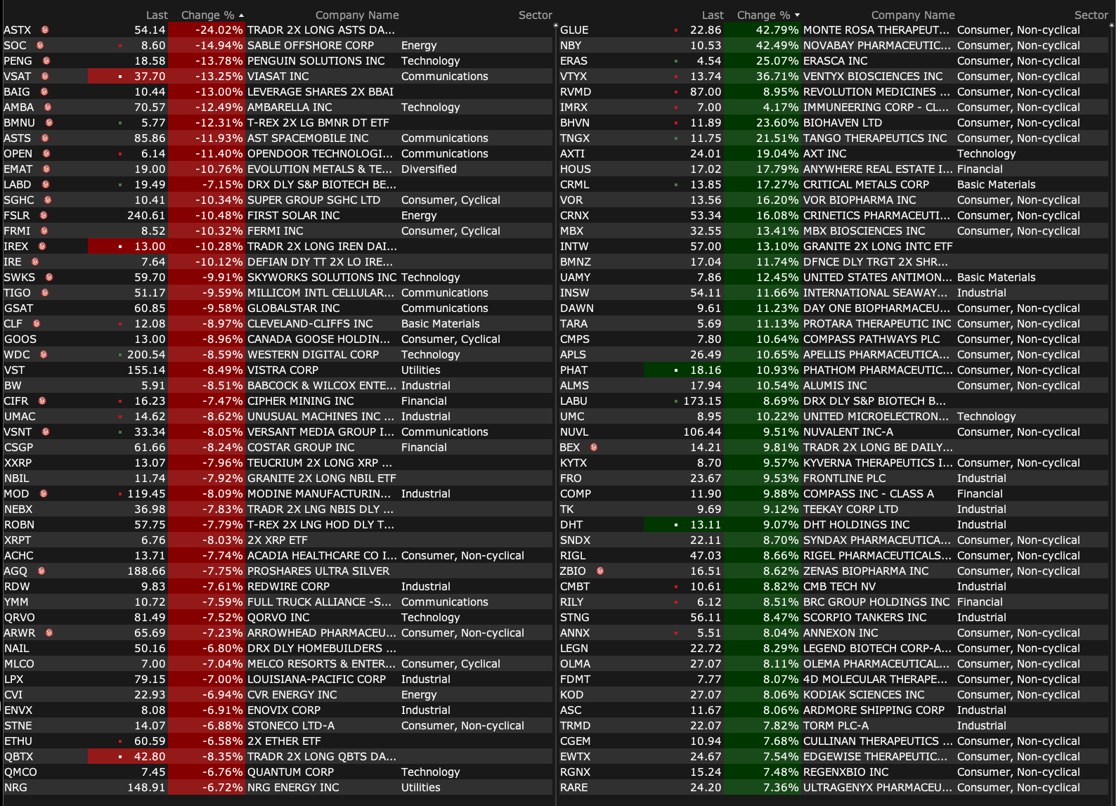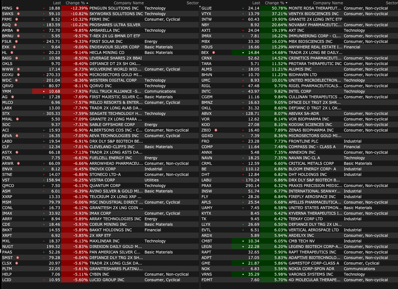 -VTYX +56% (momentum as reportedly company nears deal to be acquired by Eli Lilly for over $1B)