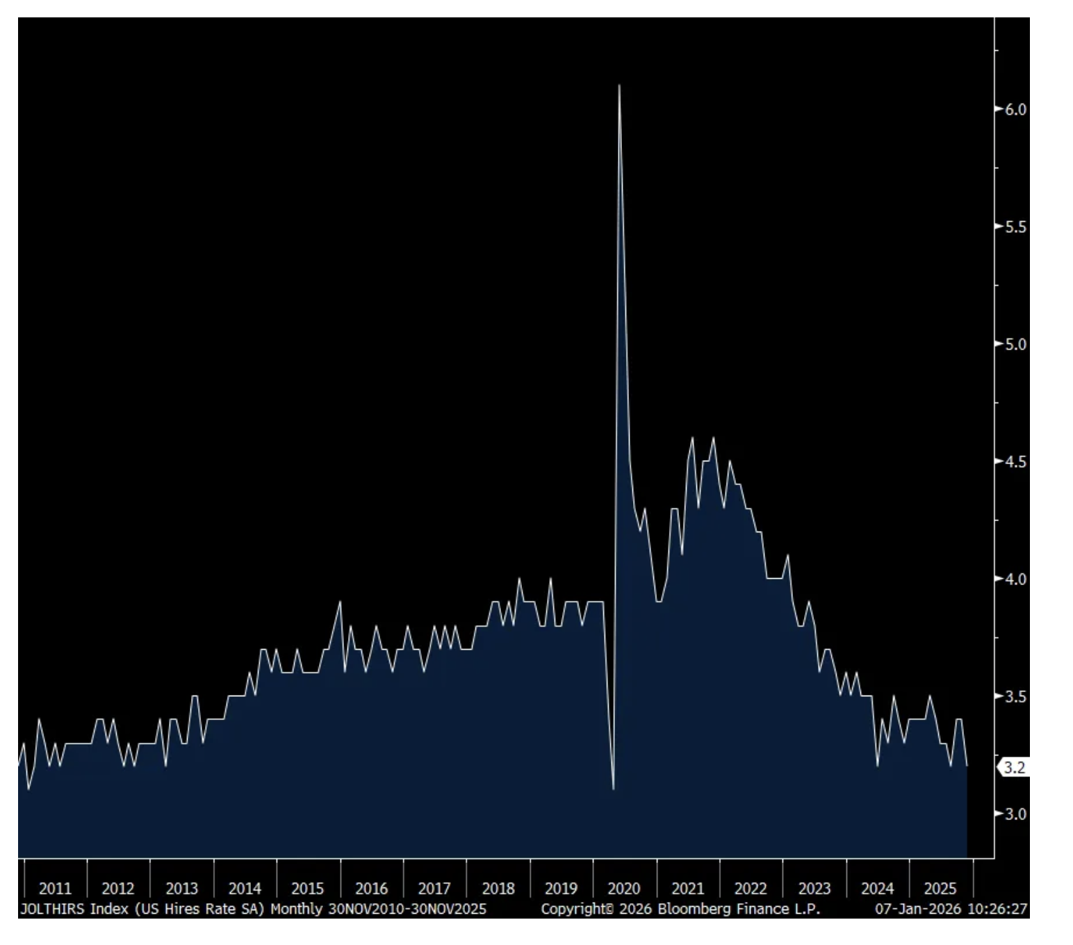 With respect to pay, those ‘stayers’ saw a wage gain of 4.4% y/o/y, unchanged with November. ‘Job changers’ saw wage gains of 6.6% y/o/y, up from 6.3% in the month before. Both pretty good but did moderate as 2025 progressed.