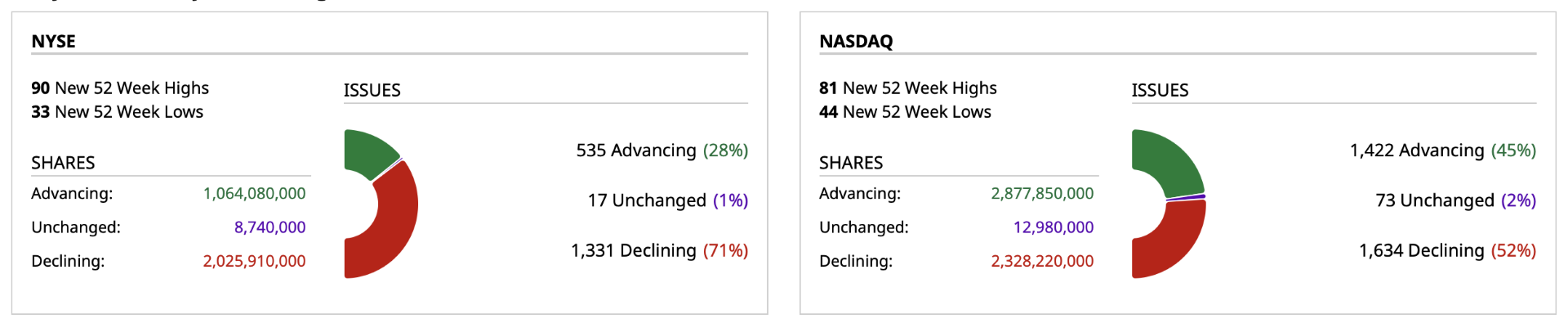 - Nasdaq volume 17% above its one-month average;