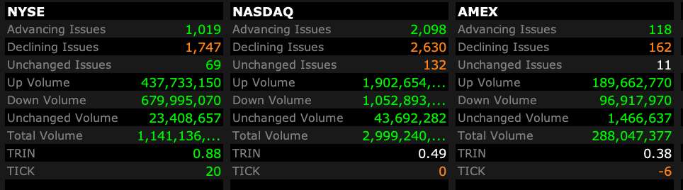 - NASDAQ volume 11% above its one-month average