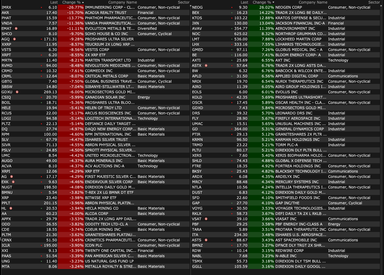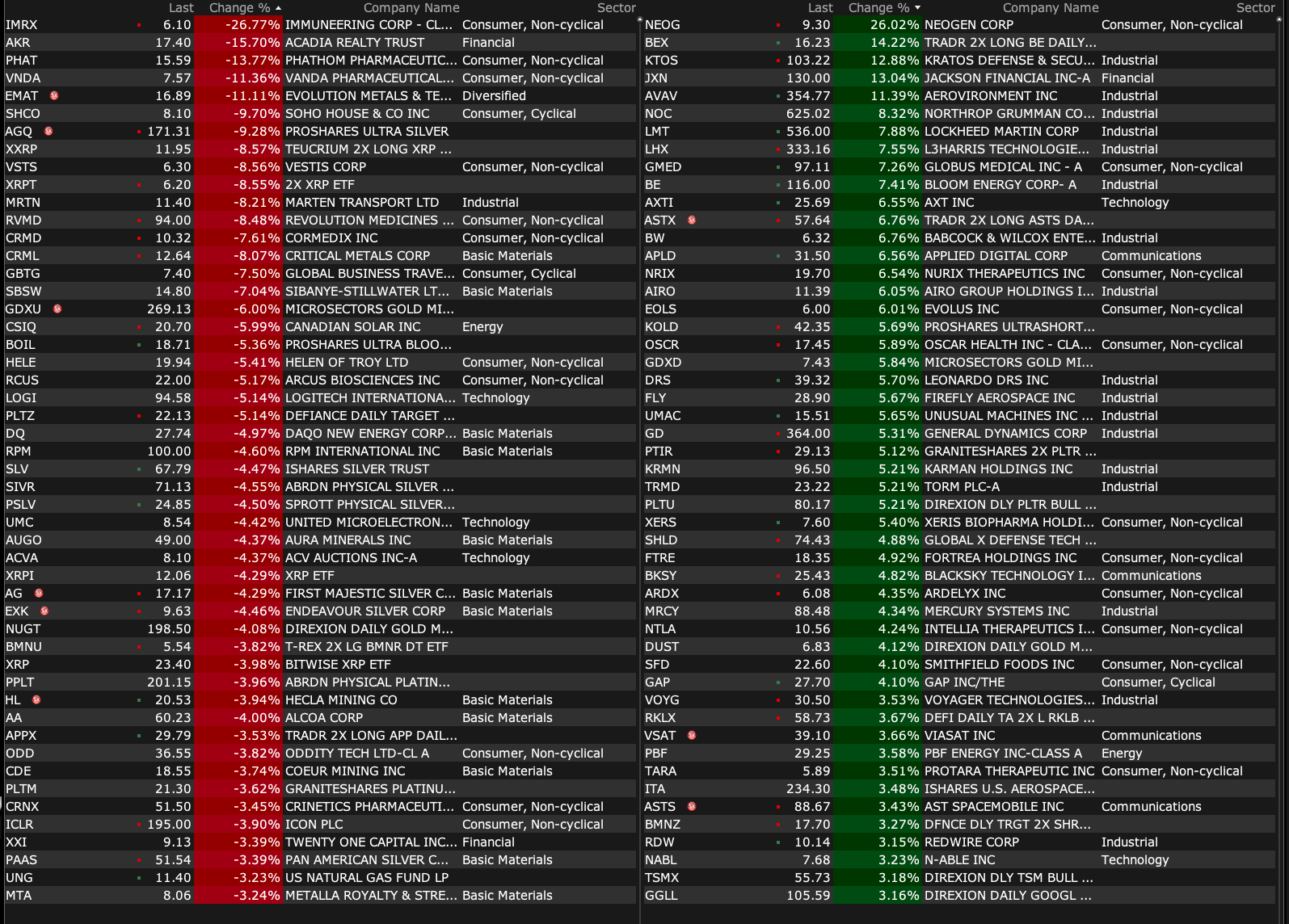 -KTOS +13% (President Trump says he will request increase in US military budget to reach $1.5T in 2027; US FCC said to exempt certain foreign made drones from new government restrictions)