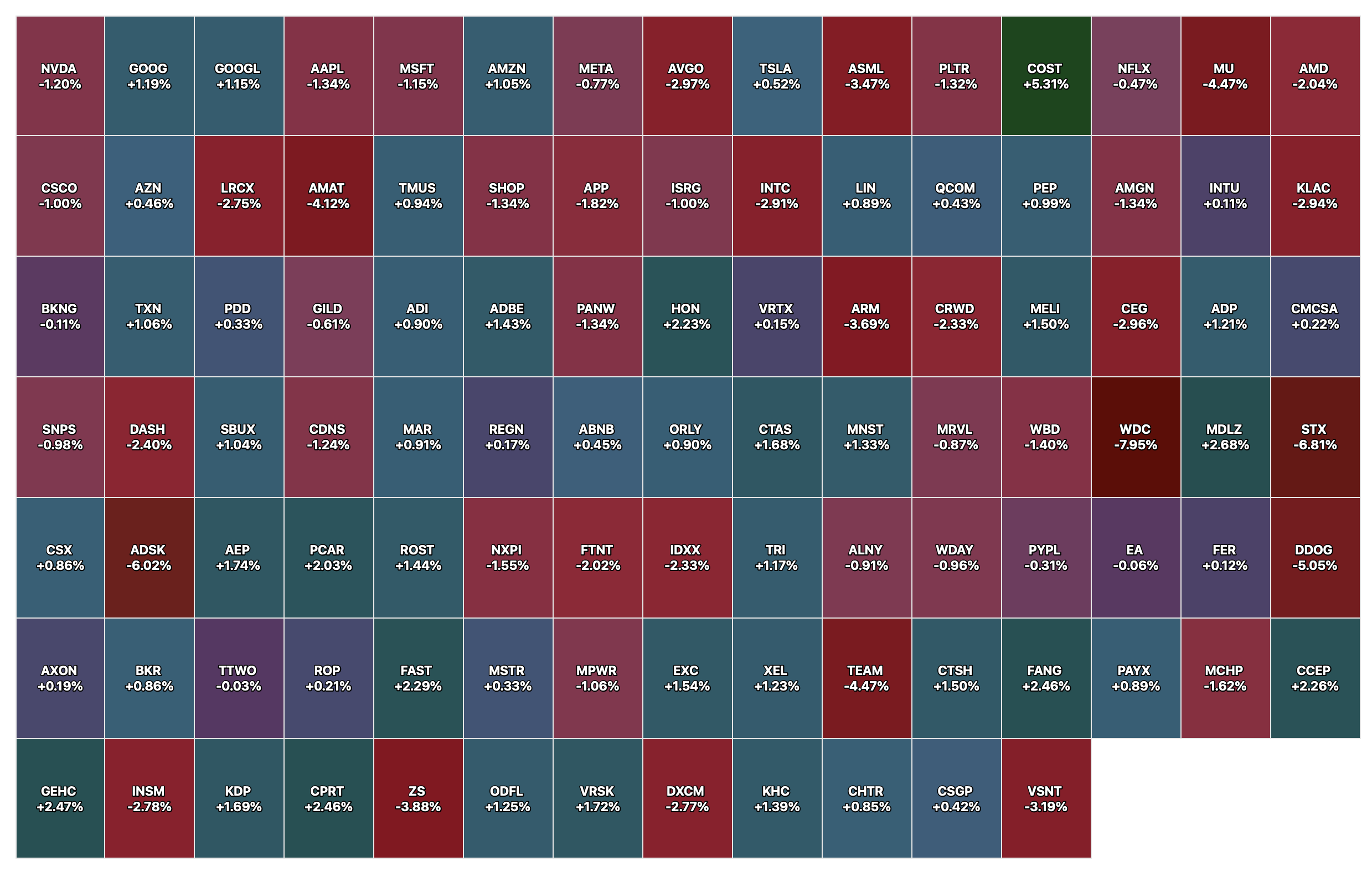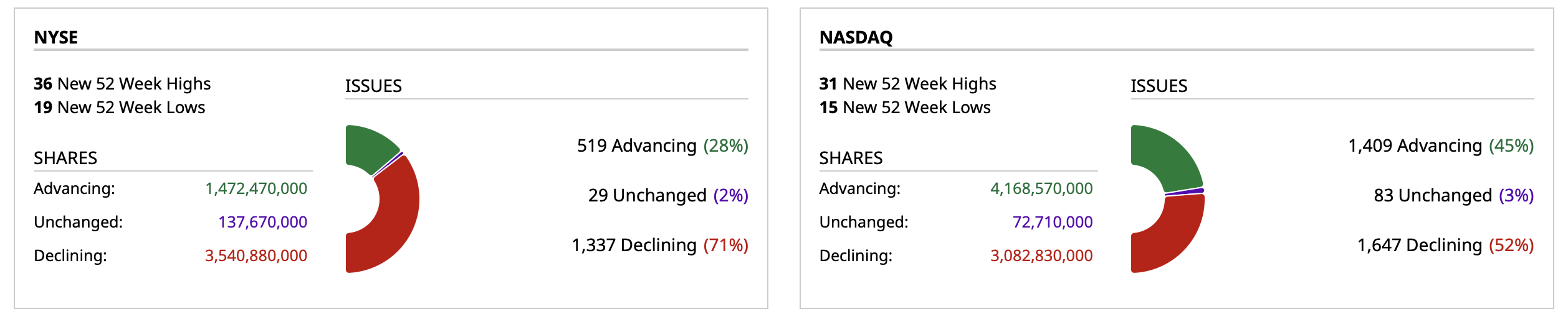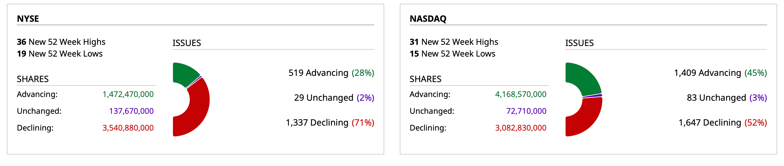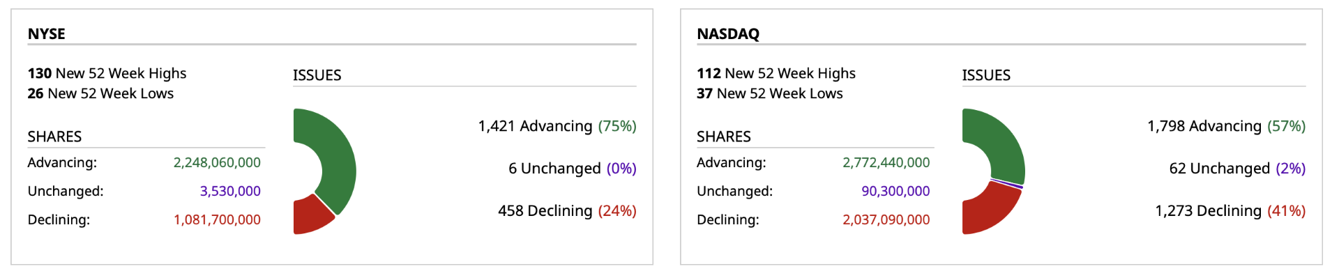 - Nasdaq volume 4% below its one-month average;
