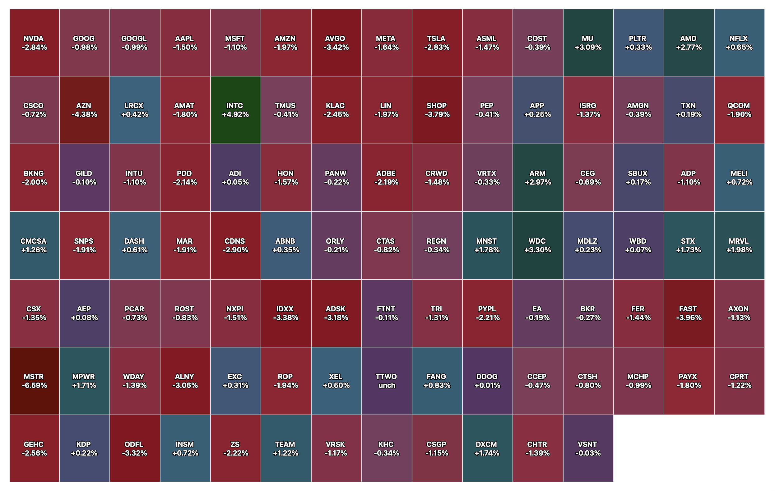 -AMZN -2.5% (CEO: Seeing some sellers passing along tariffs and others are absorbing it)