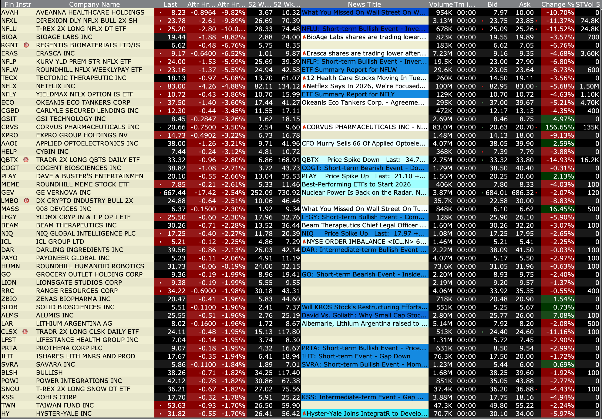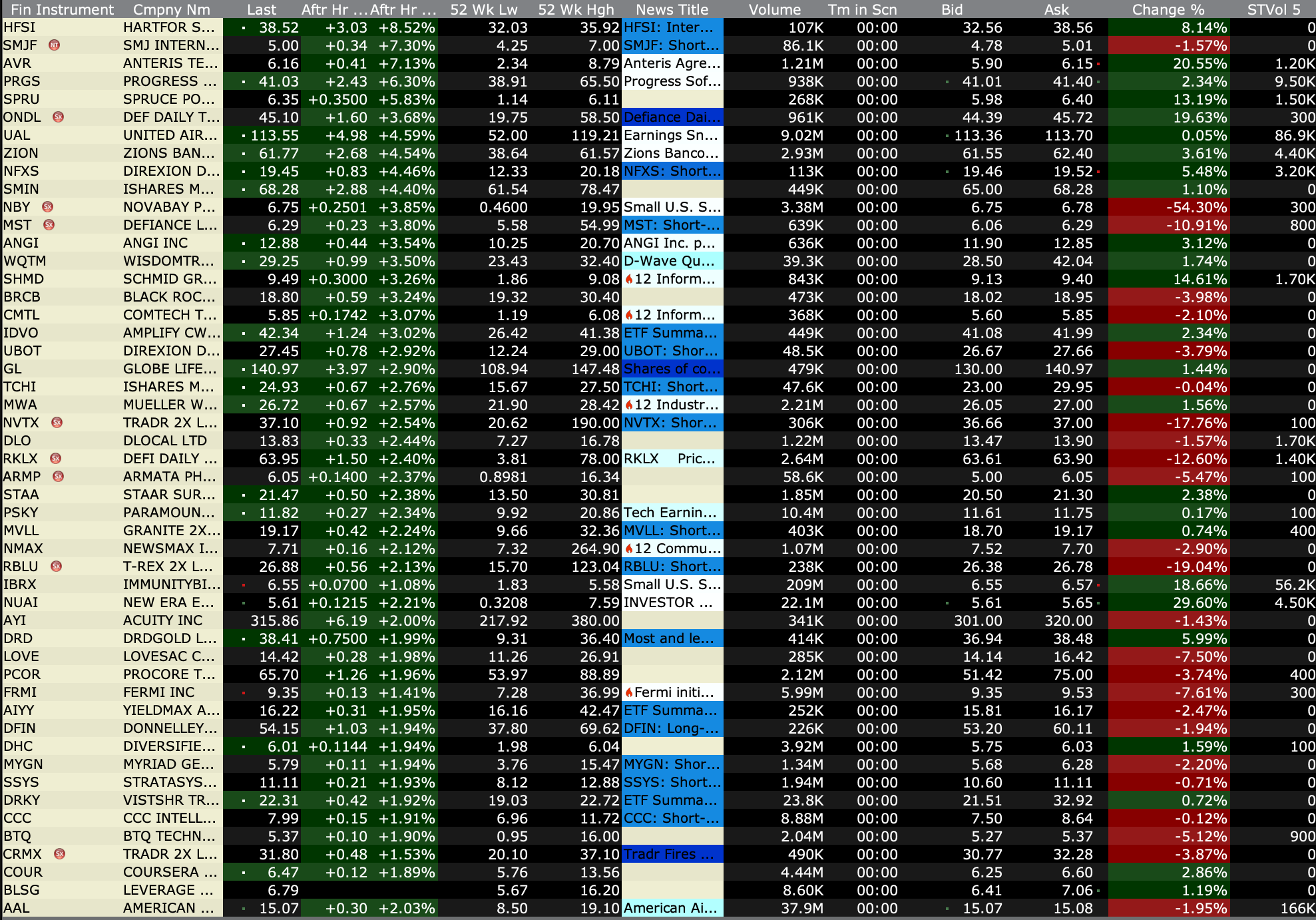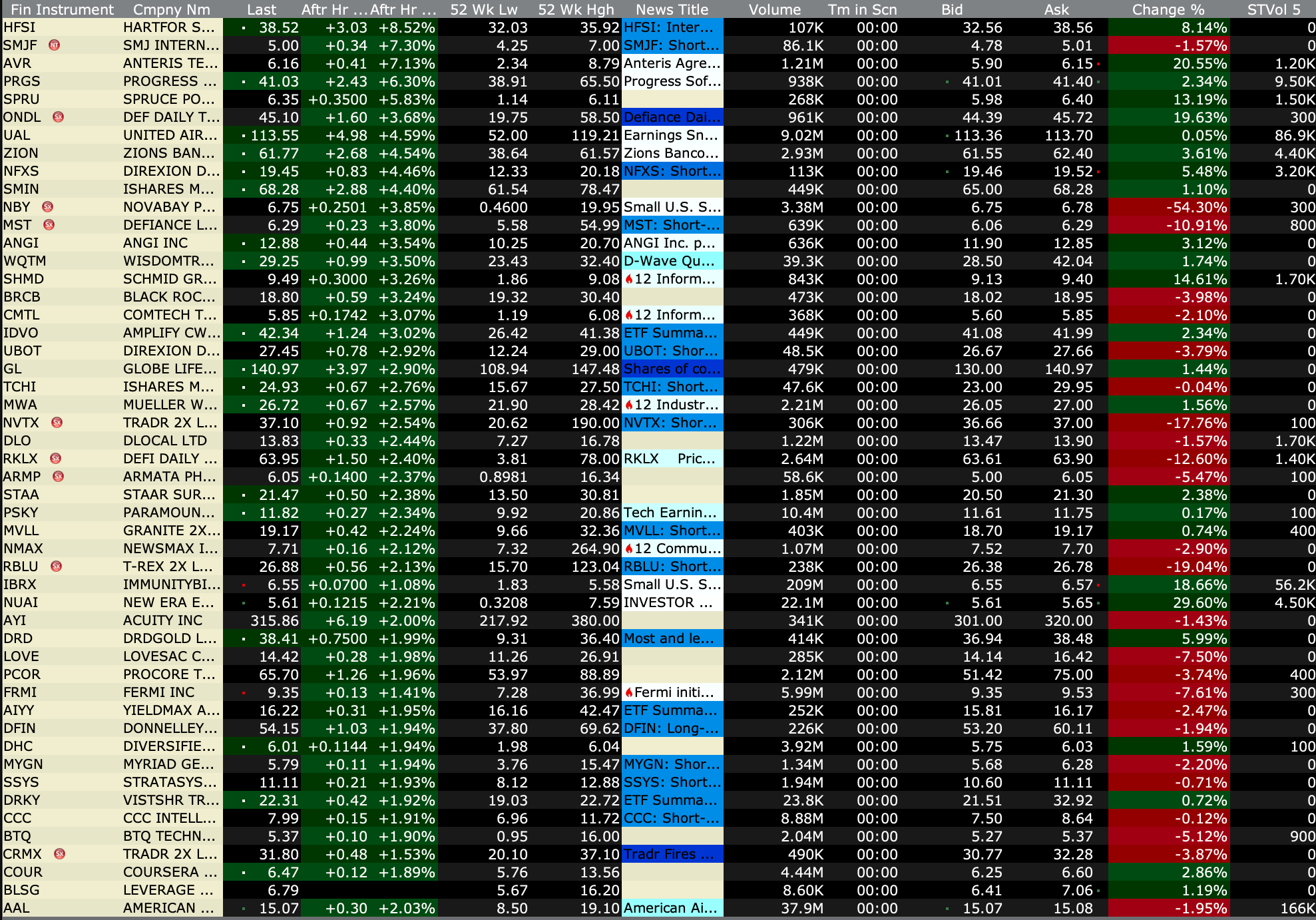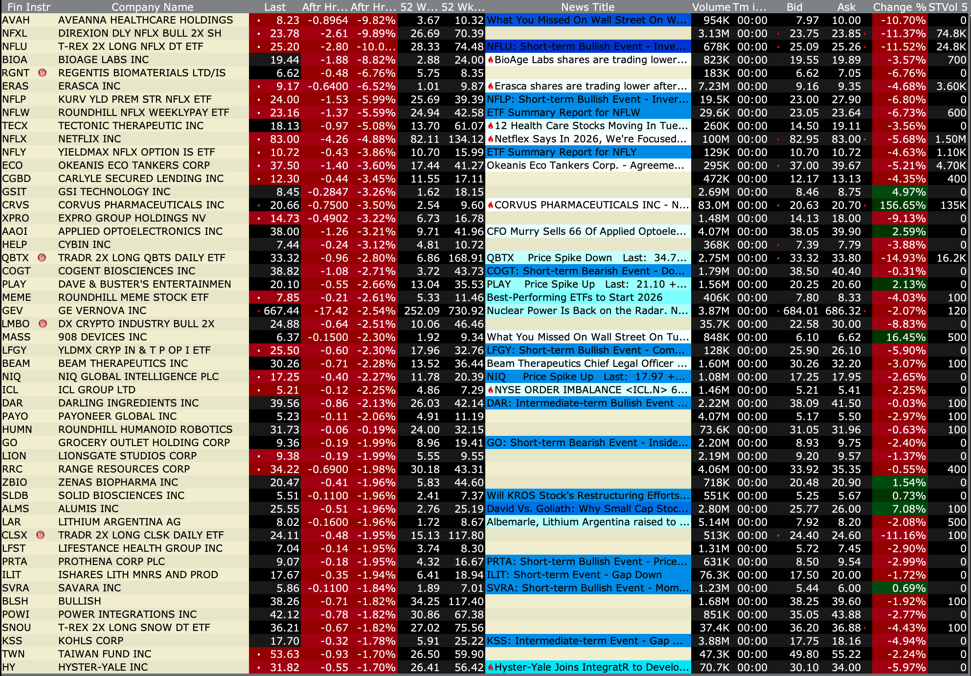 After-Hours Gainers and Decliners