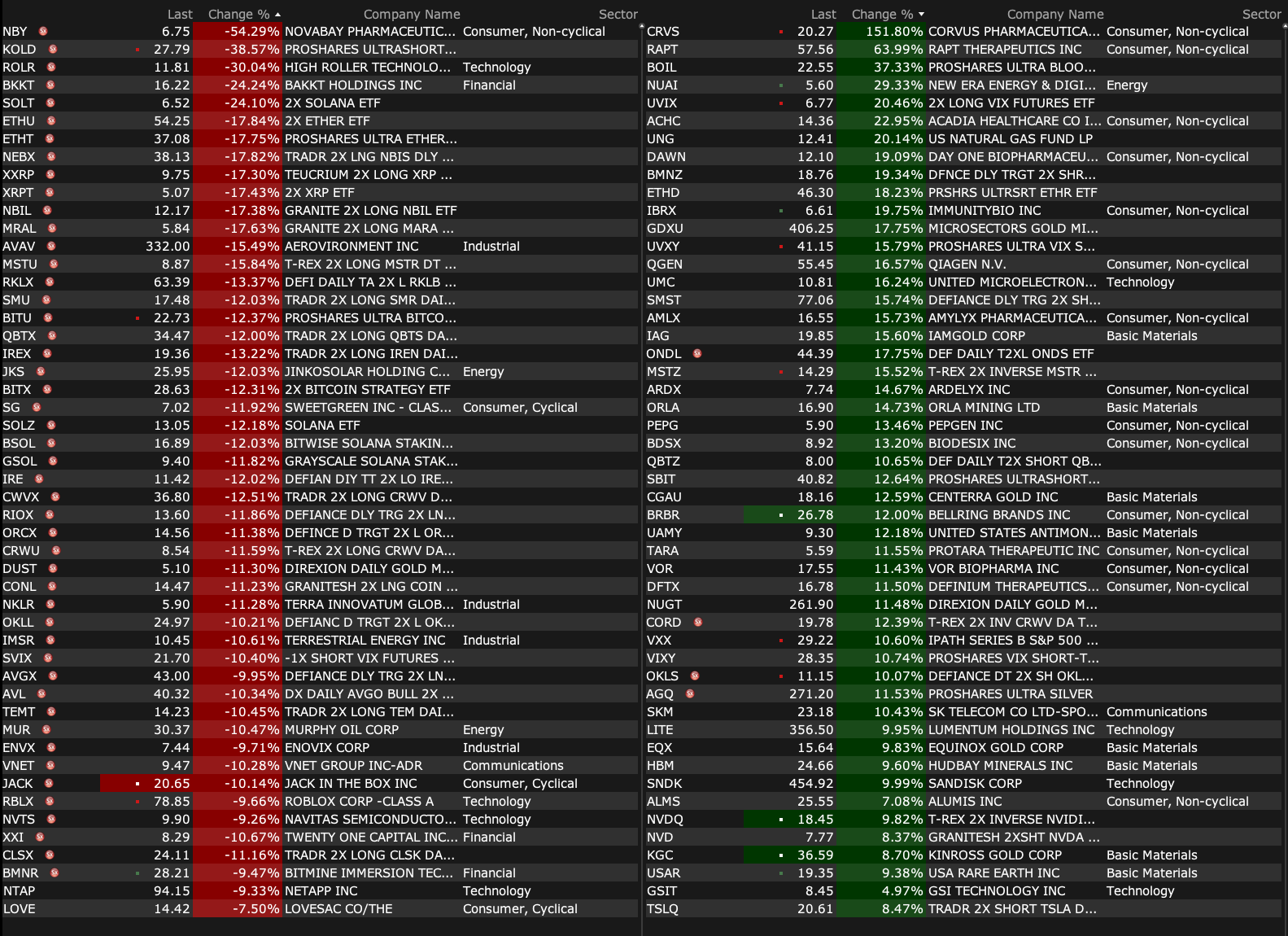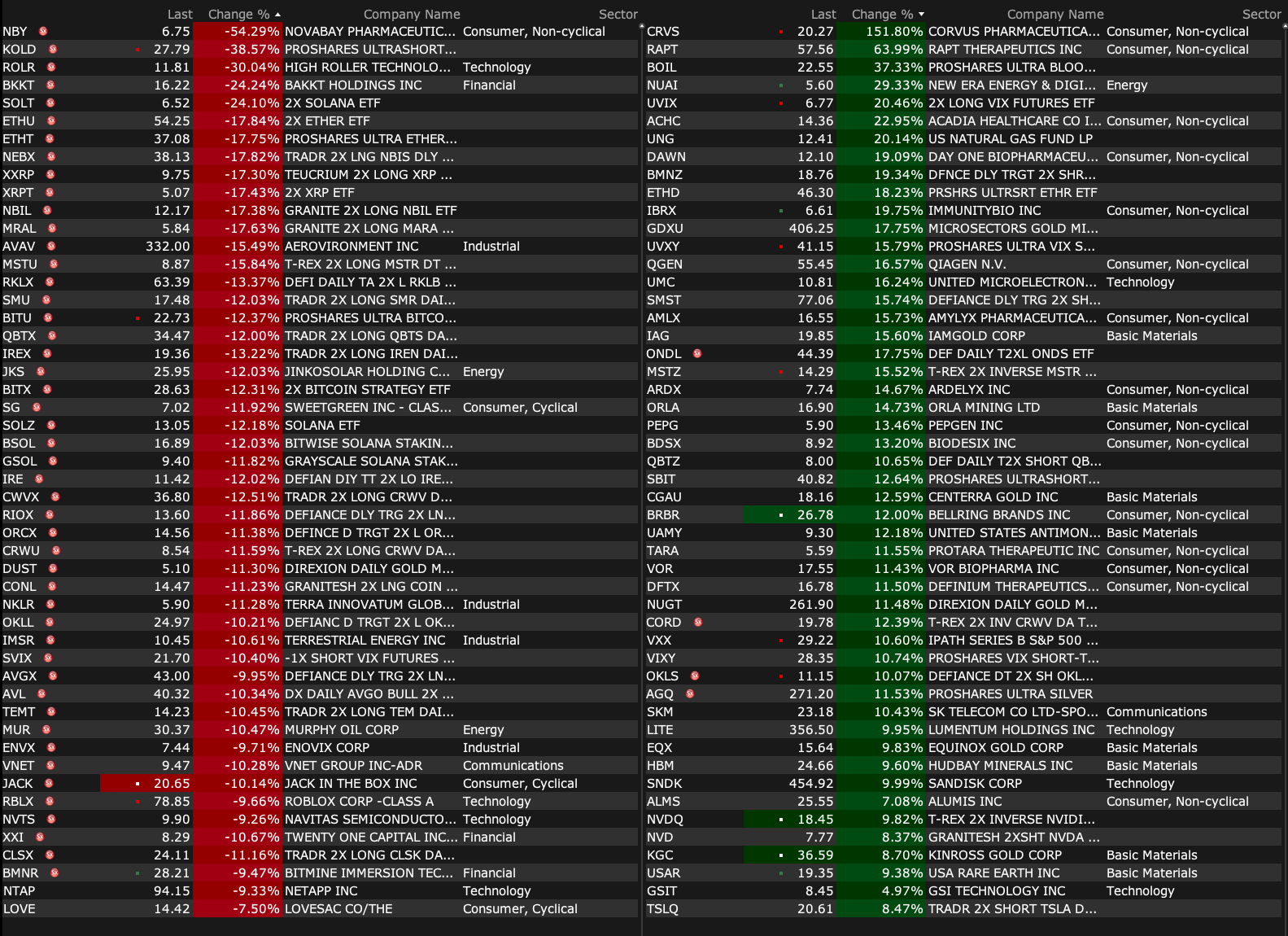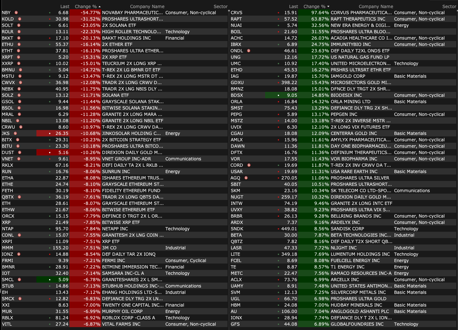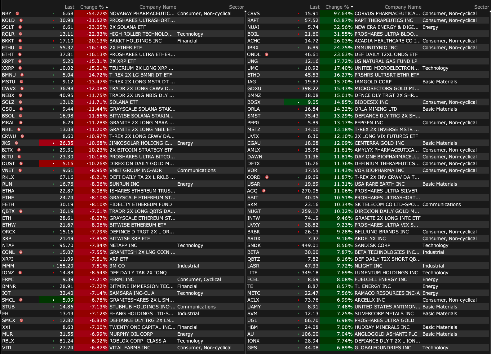 After-Hours Gainers and Decliners
