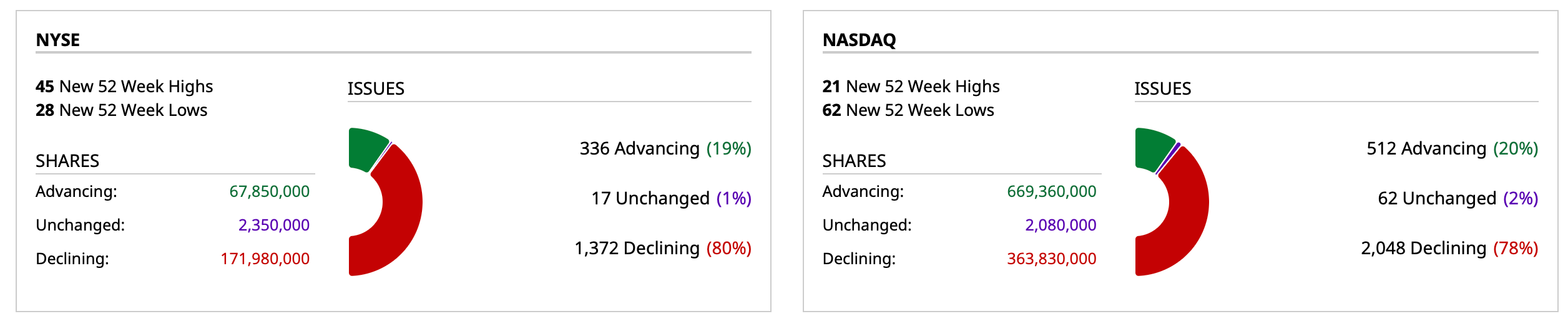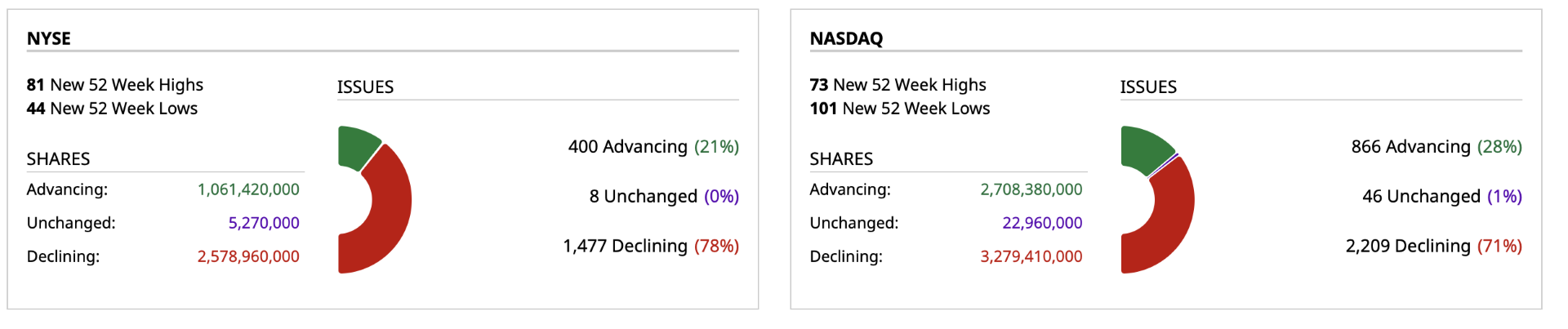 - NASDAQ volume 16% above its one-month average