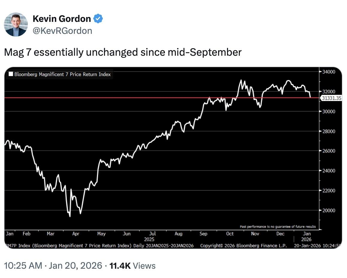 Since September, Mag 7 stocks (compromising a package of popular "generational compounders" are flat and are massively underperforming: