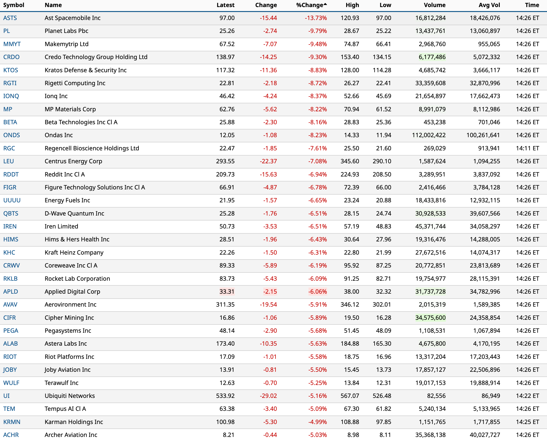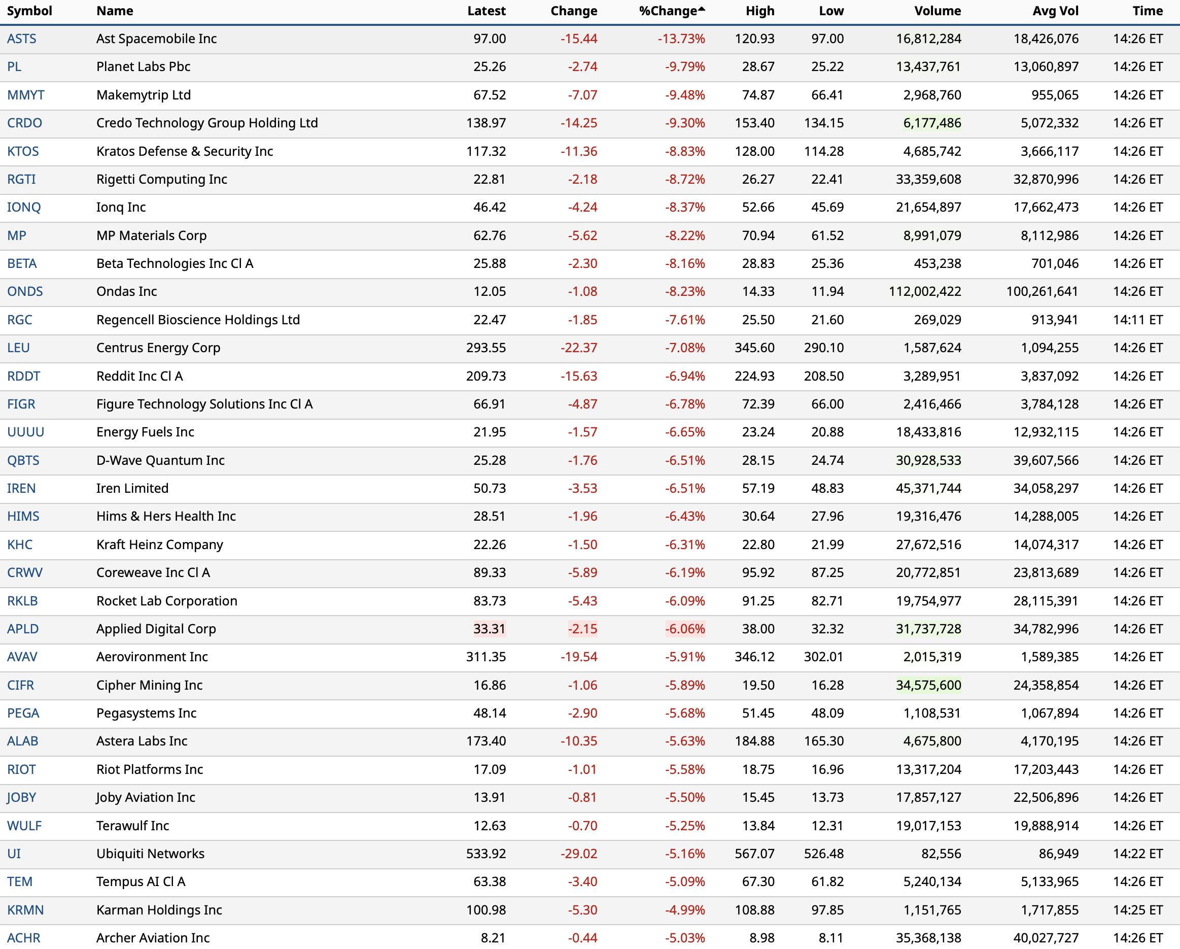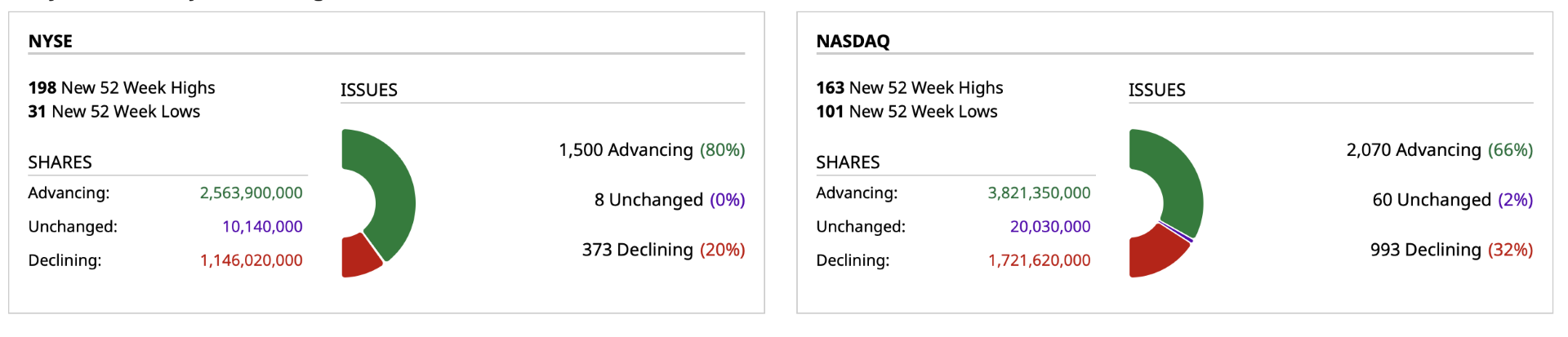 - Nasdaq volume 8% below its one-month average;