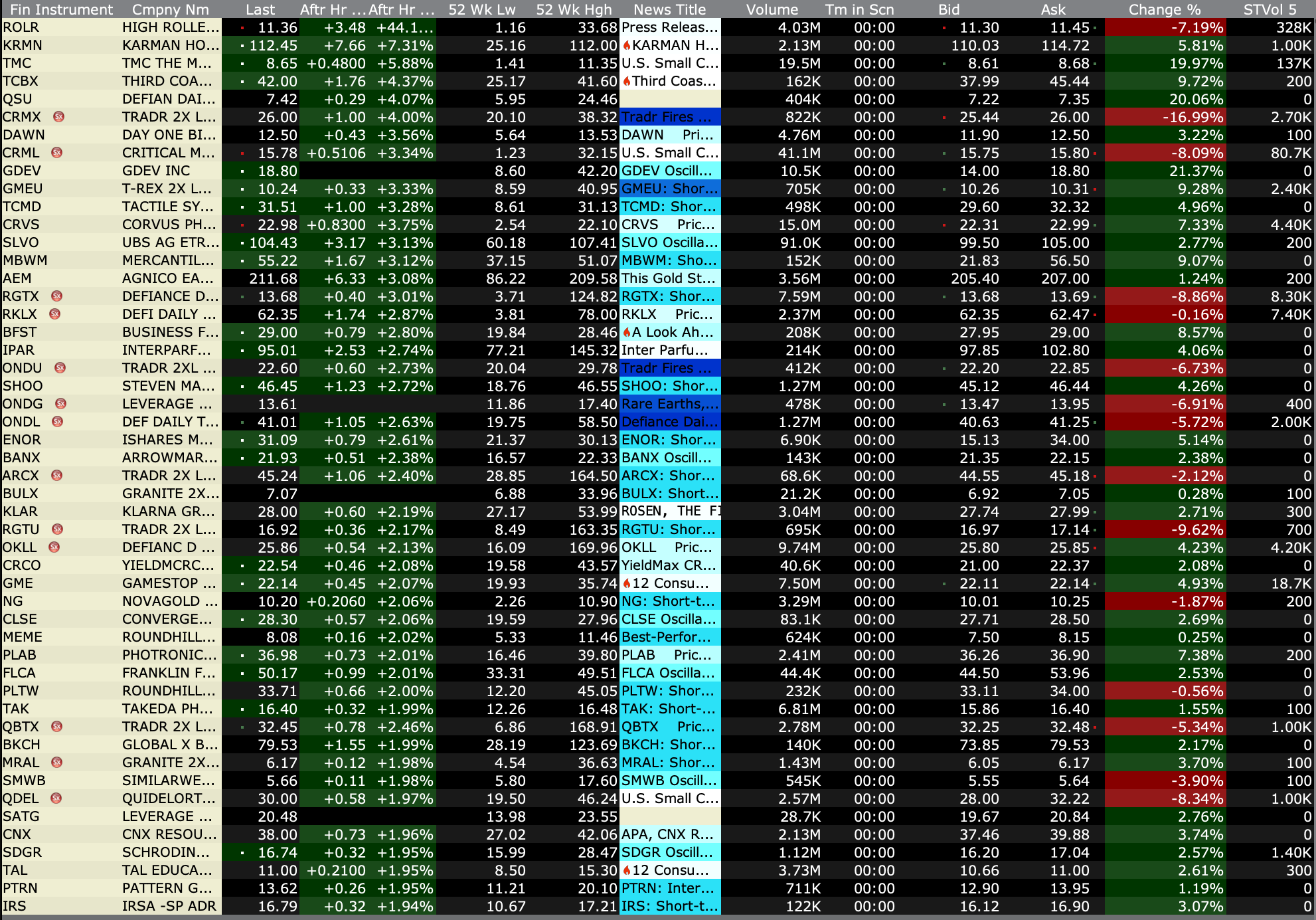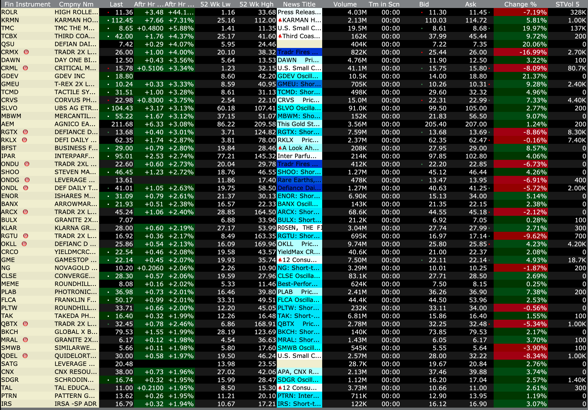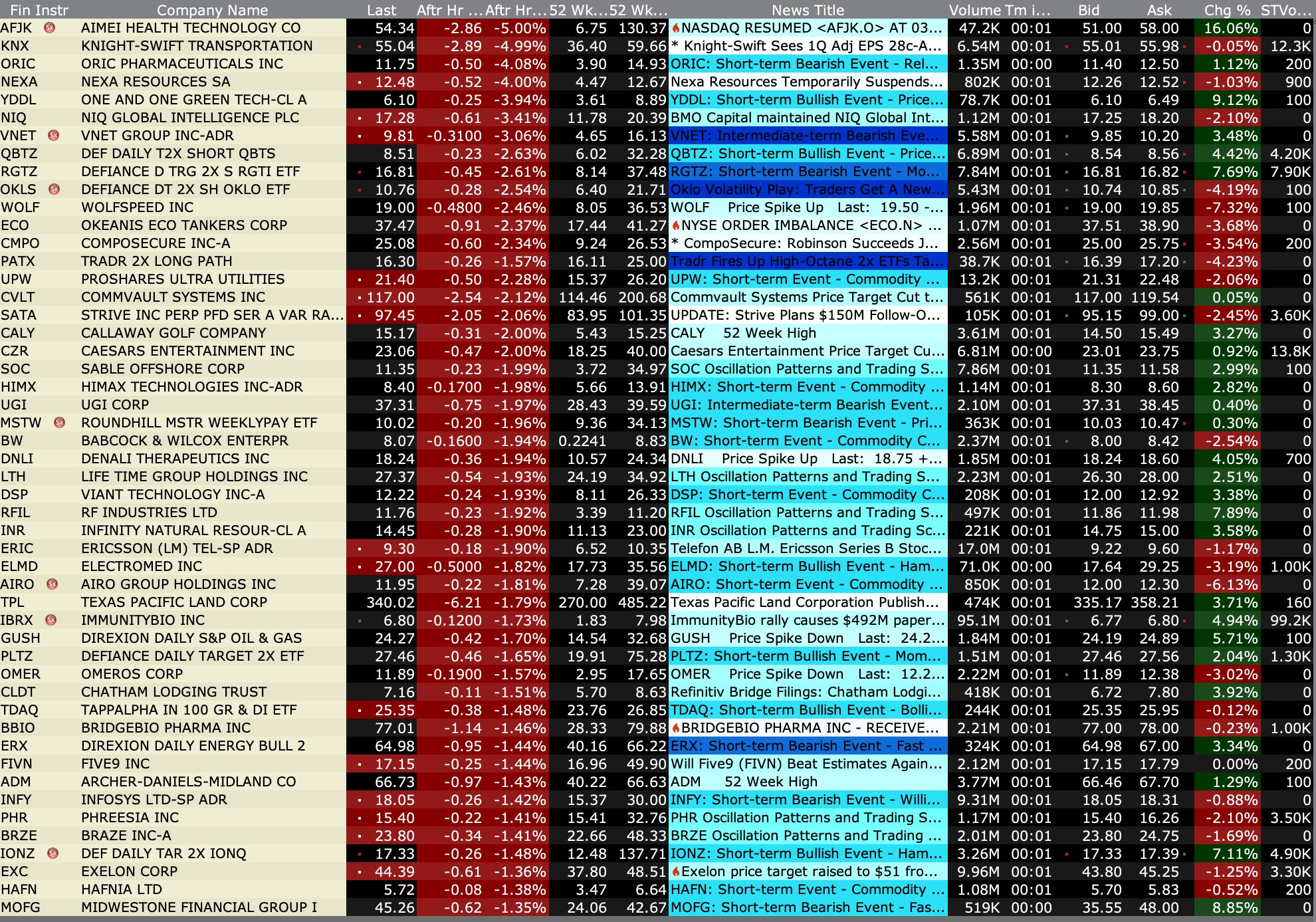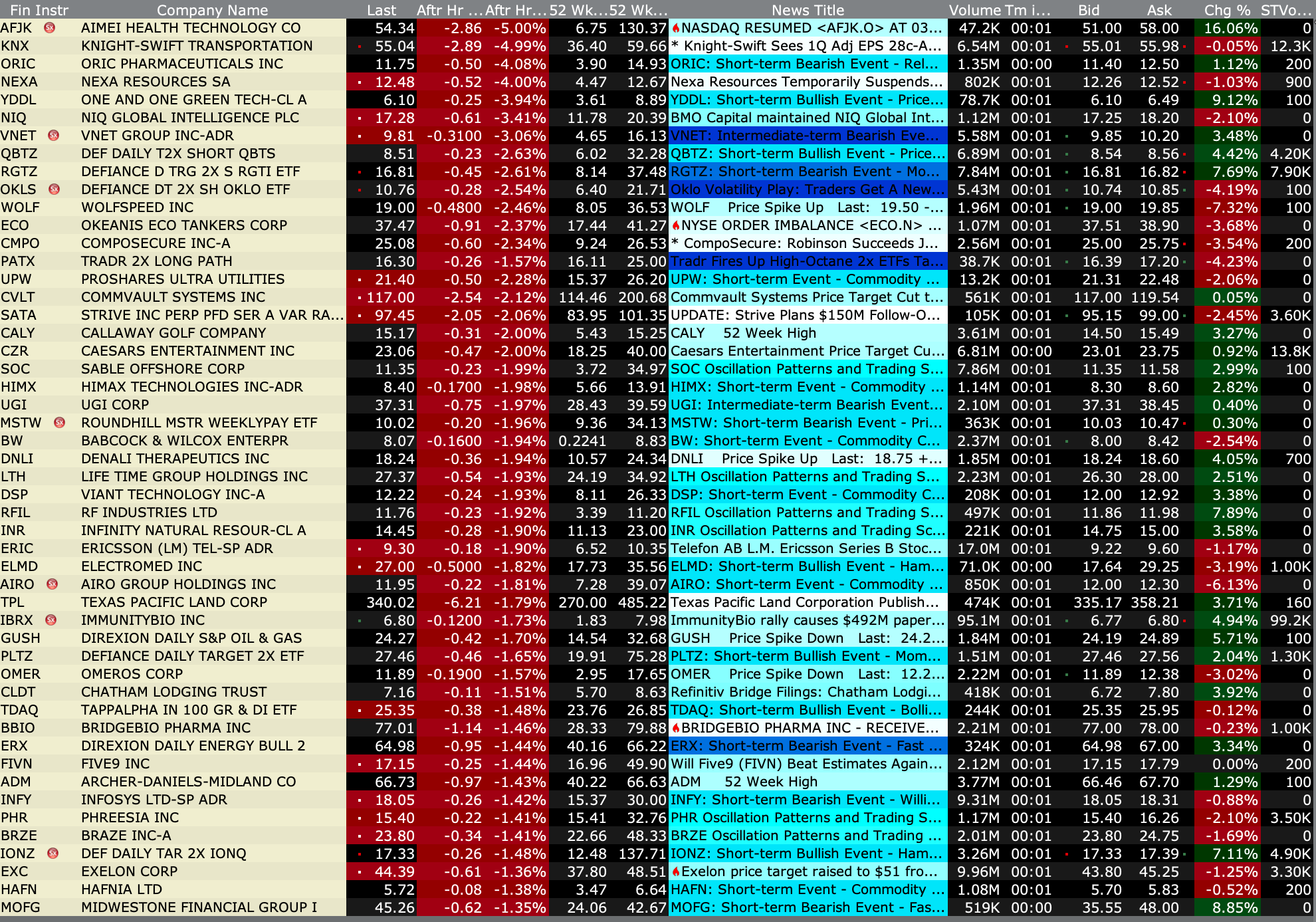 After-Hours Gainers and Decliners