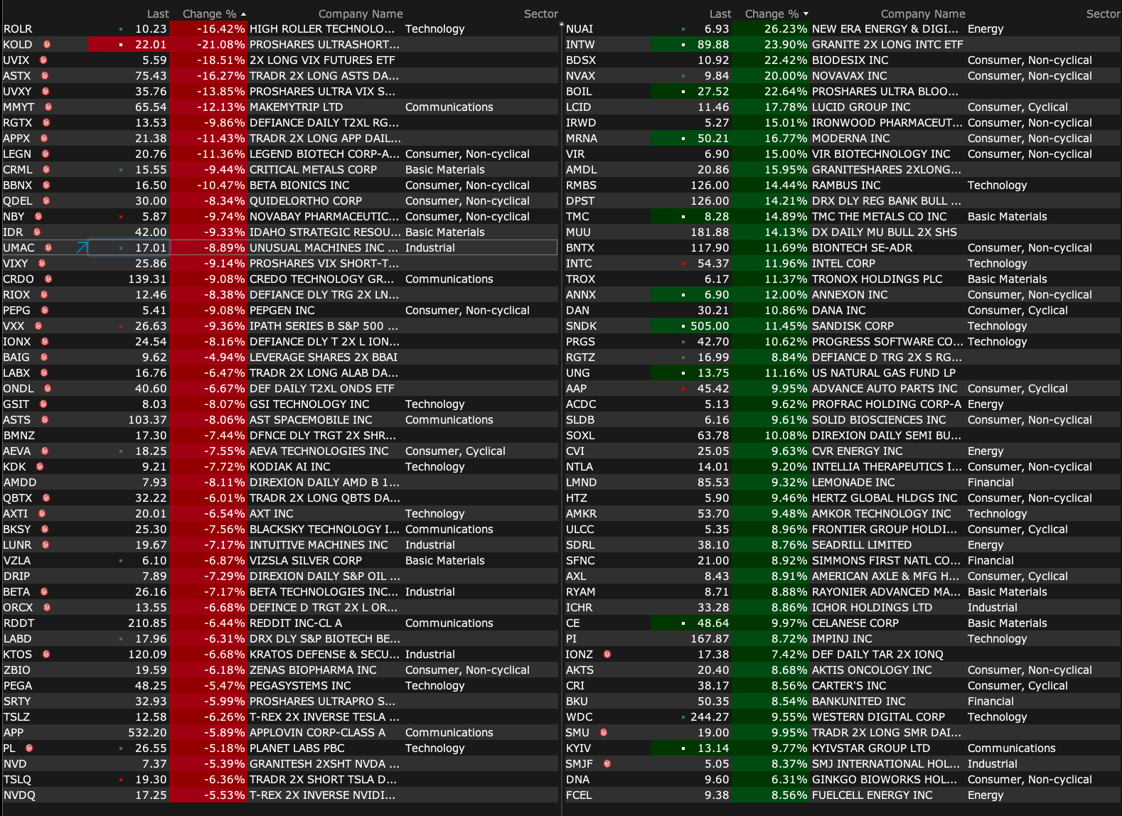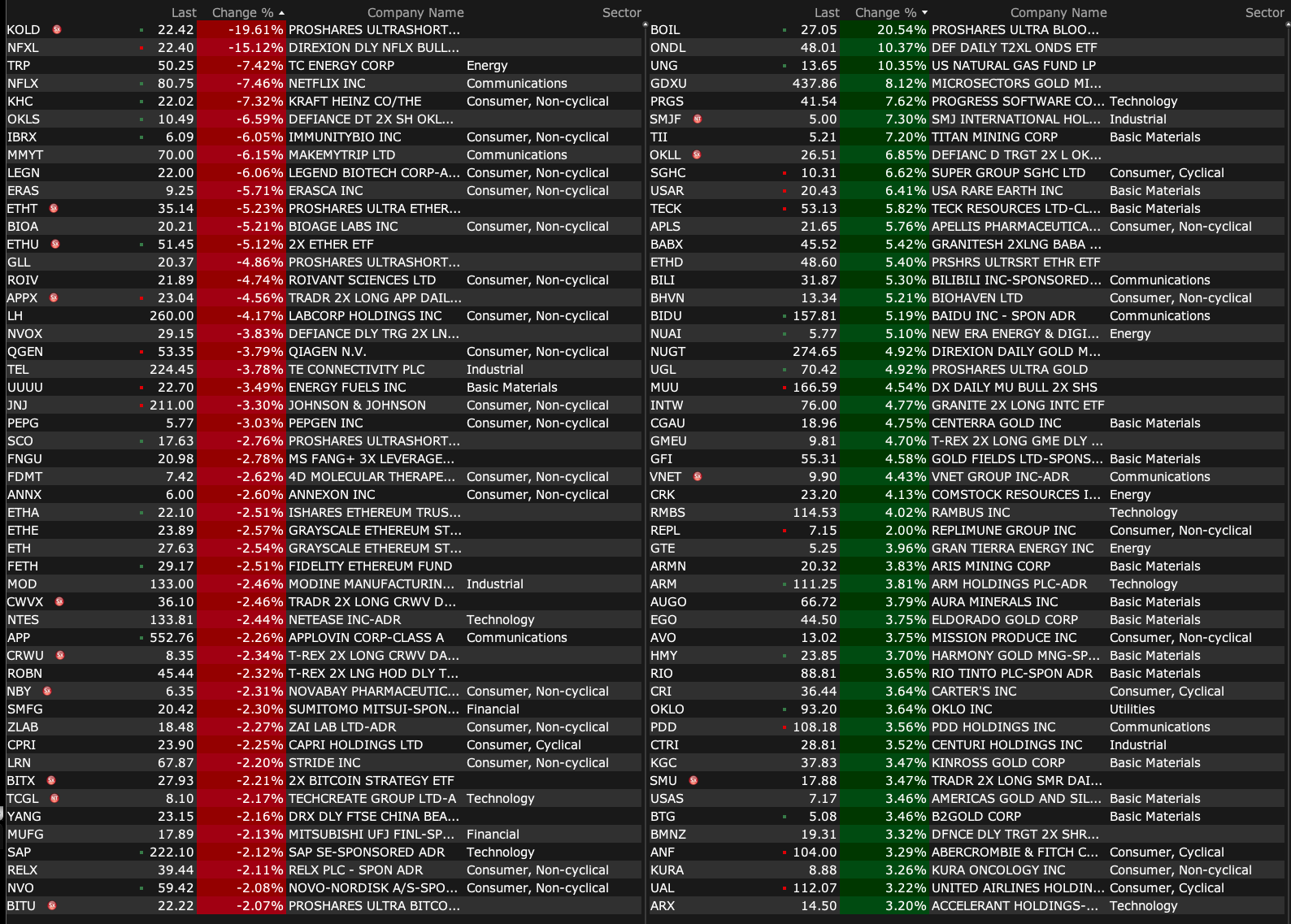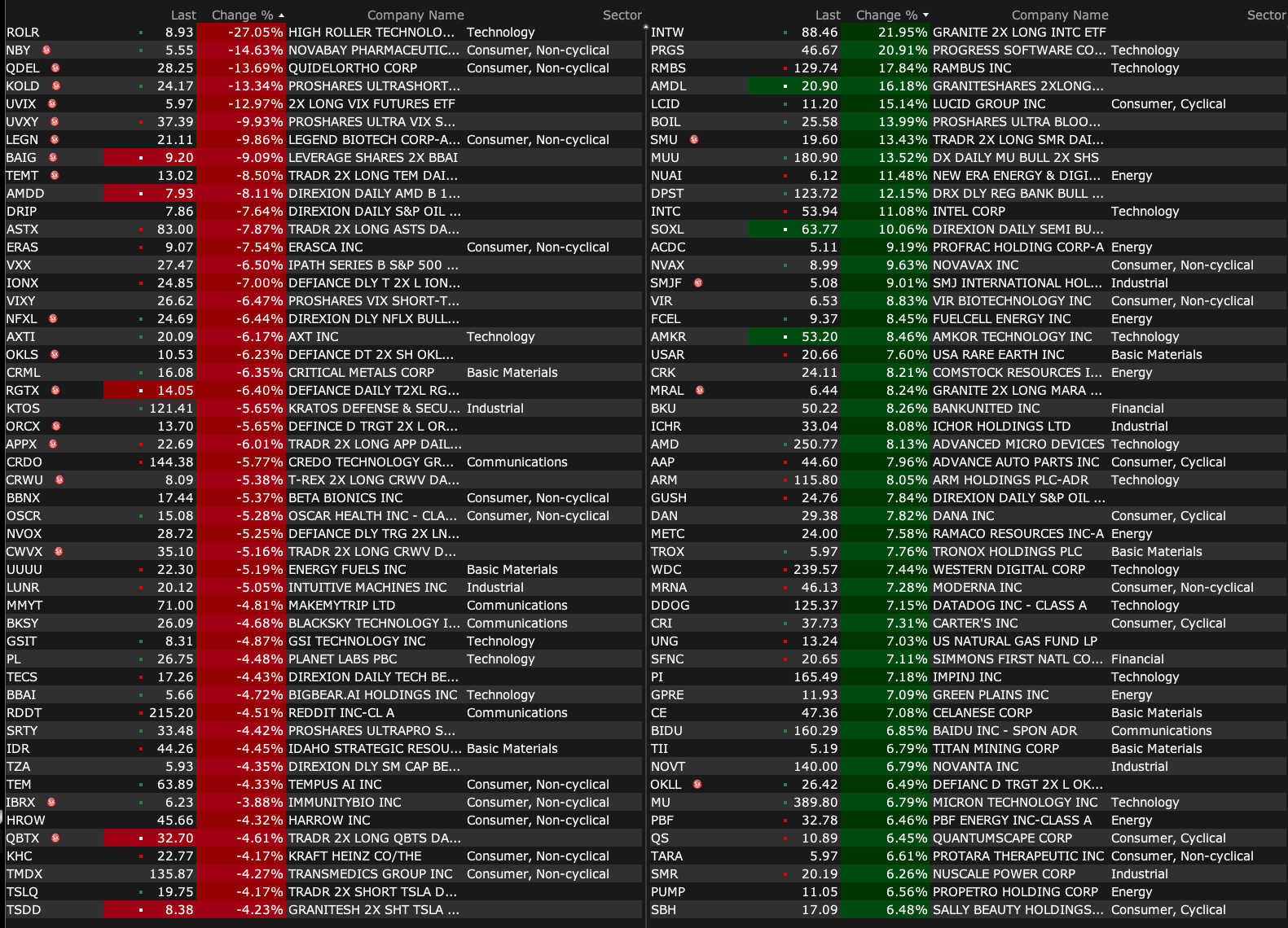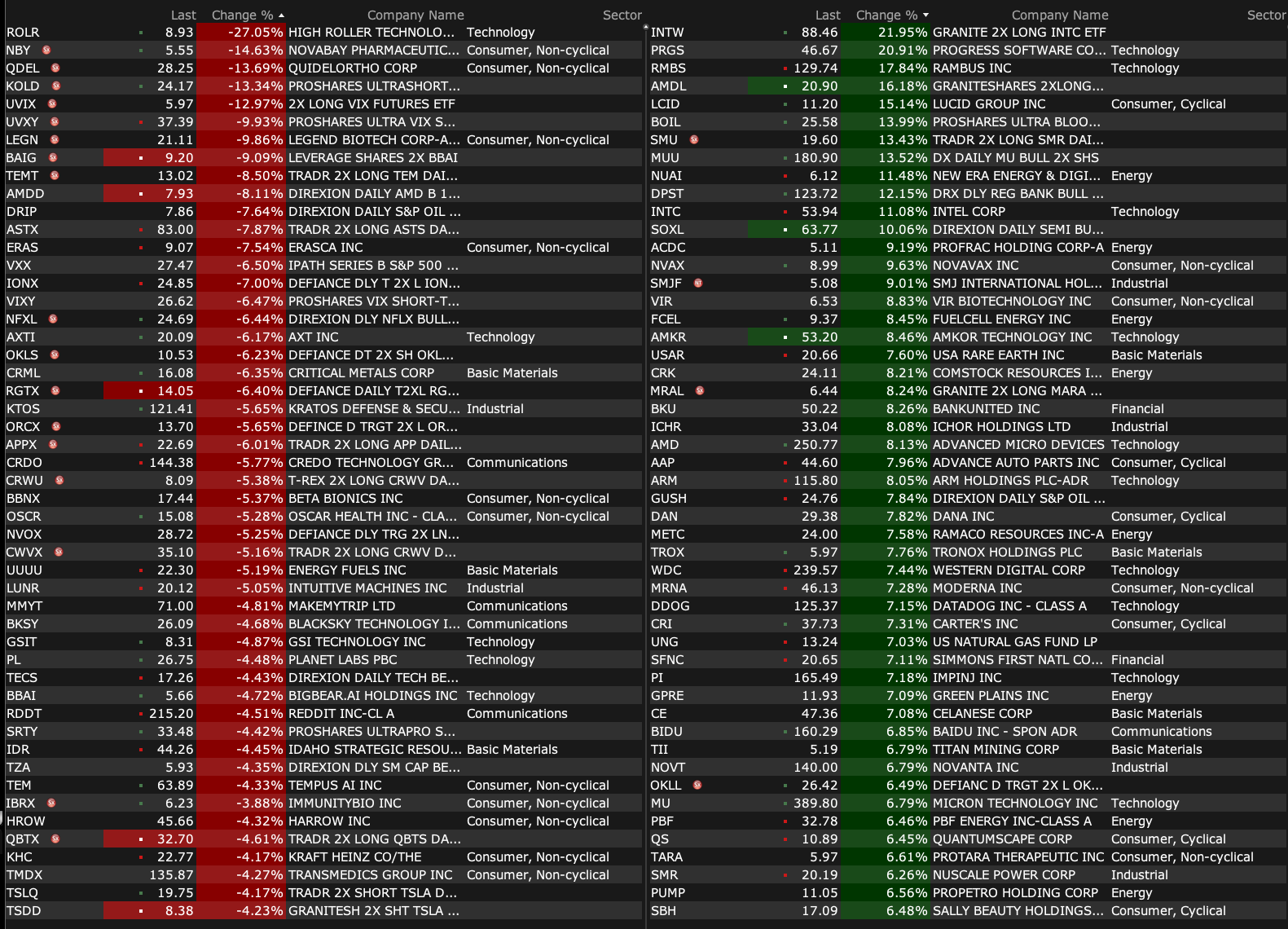 After-Hours Gainers and Decliners