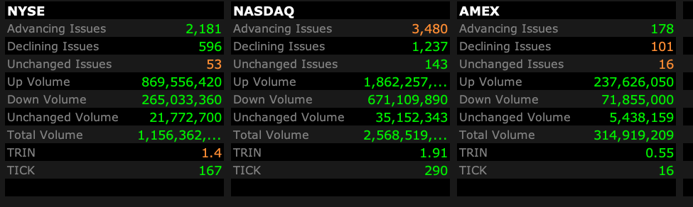- NASDAQ volume 12% above its one-month average