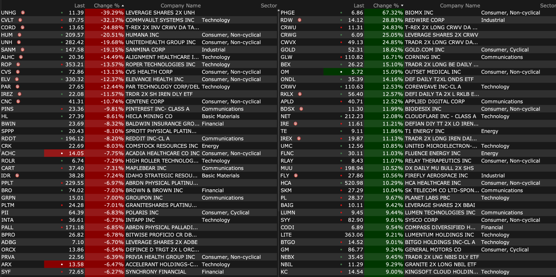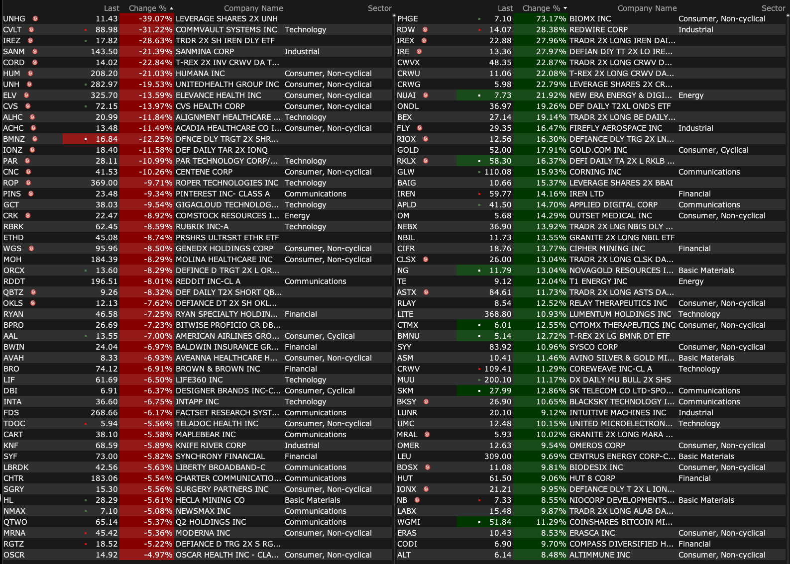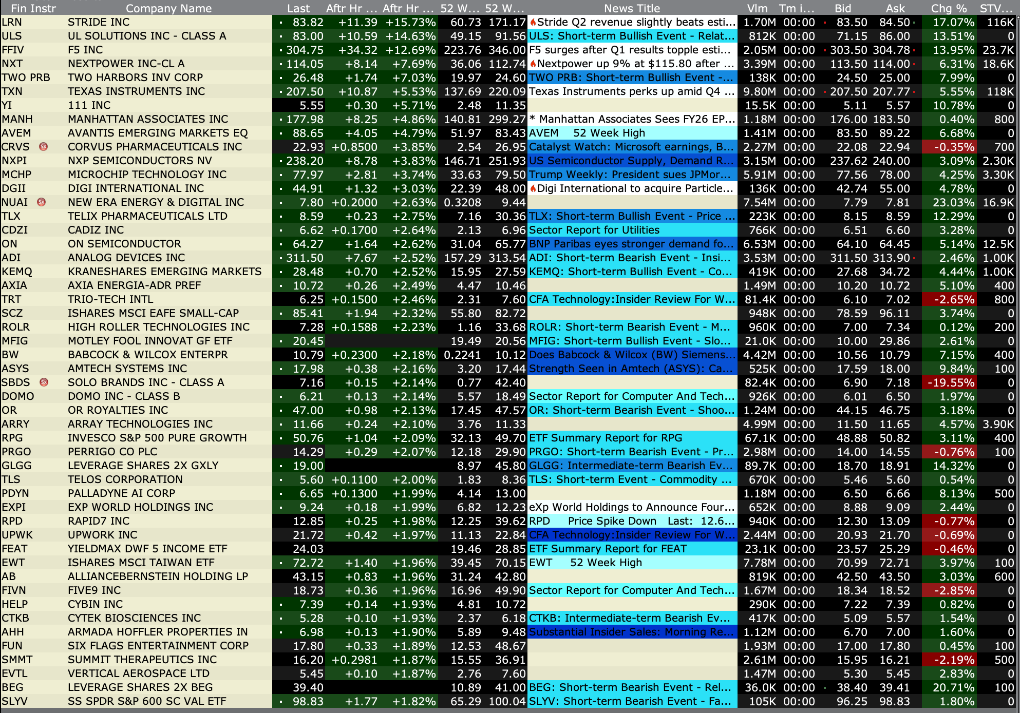 After-Hours Gainers and Decliners