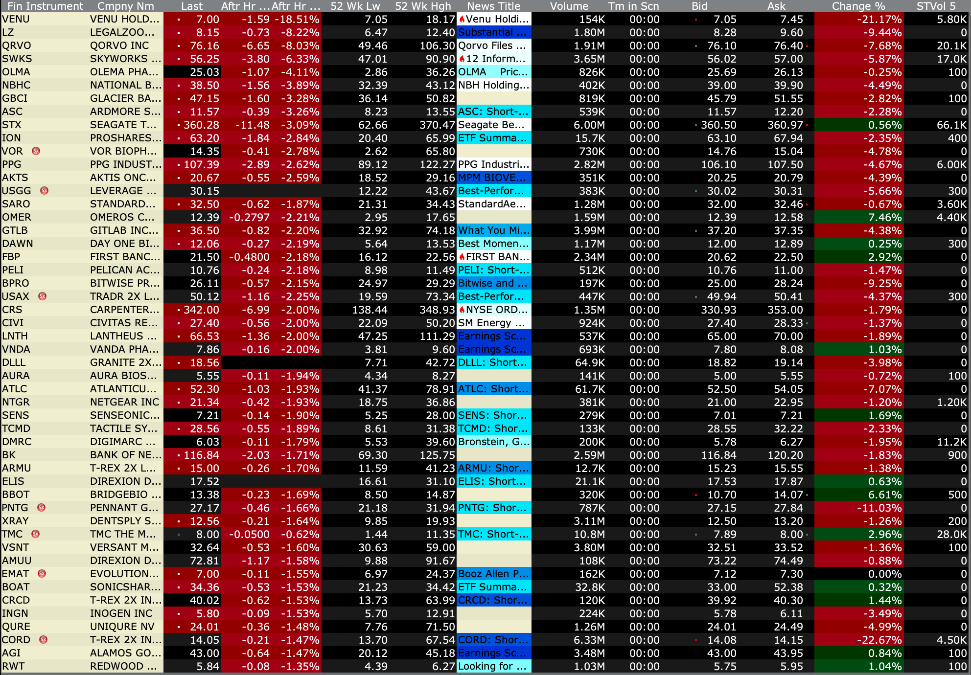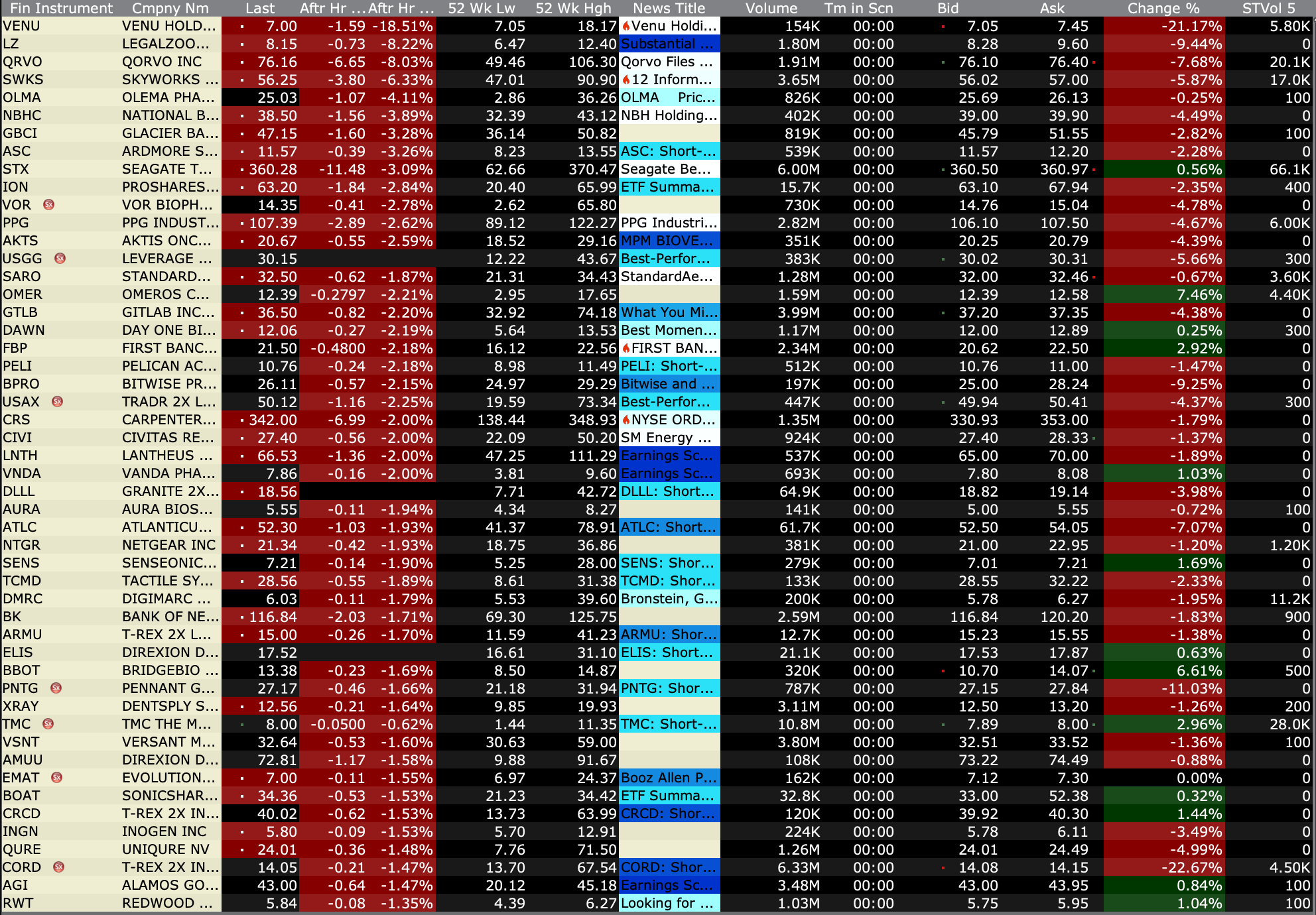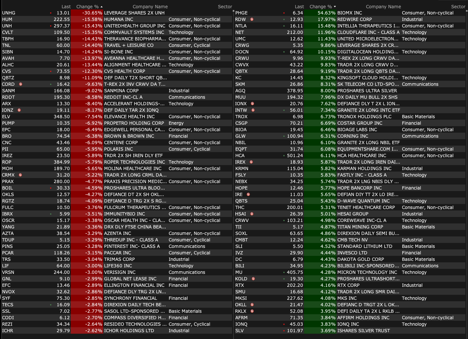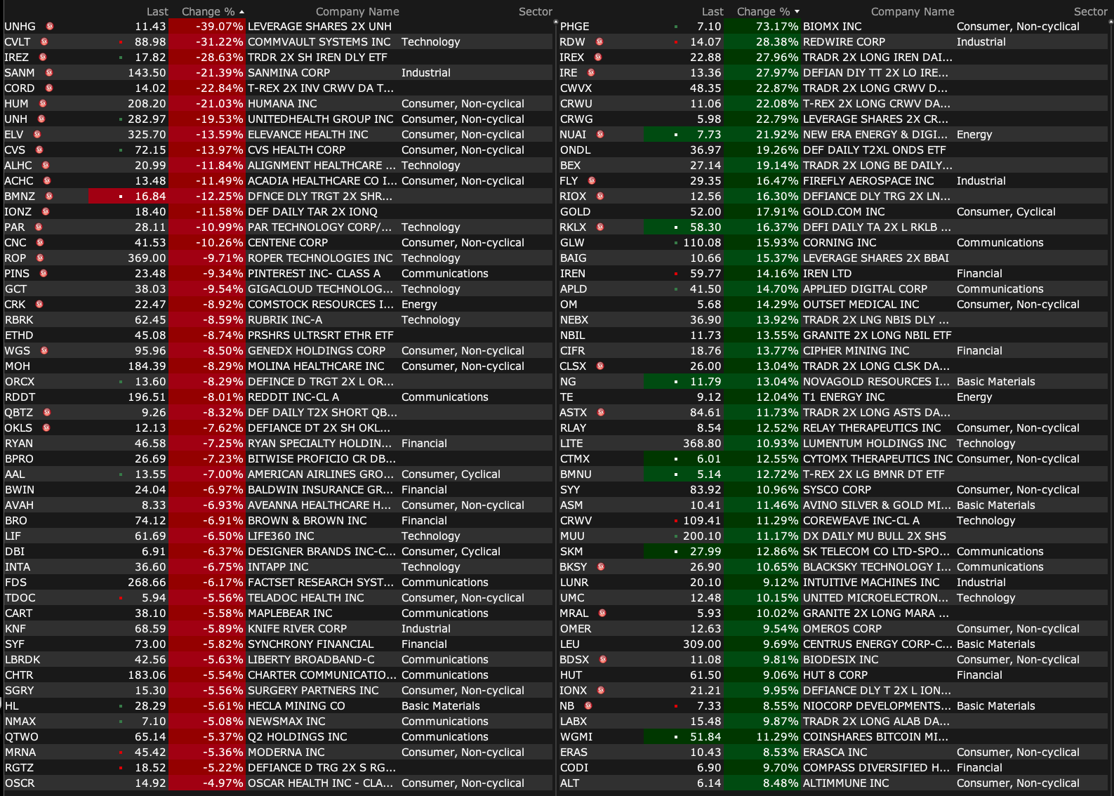 After-Hours Gainers and Decliners