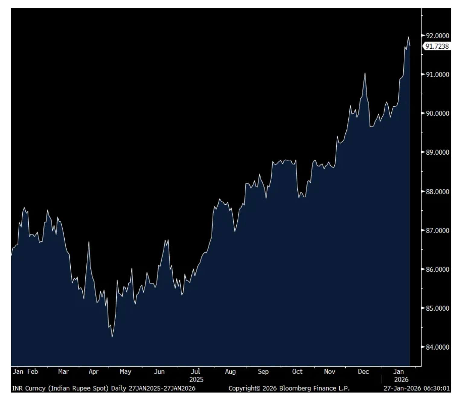 Indian Rupee (the higher, the weaker vs USD)