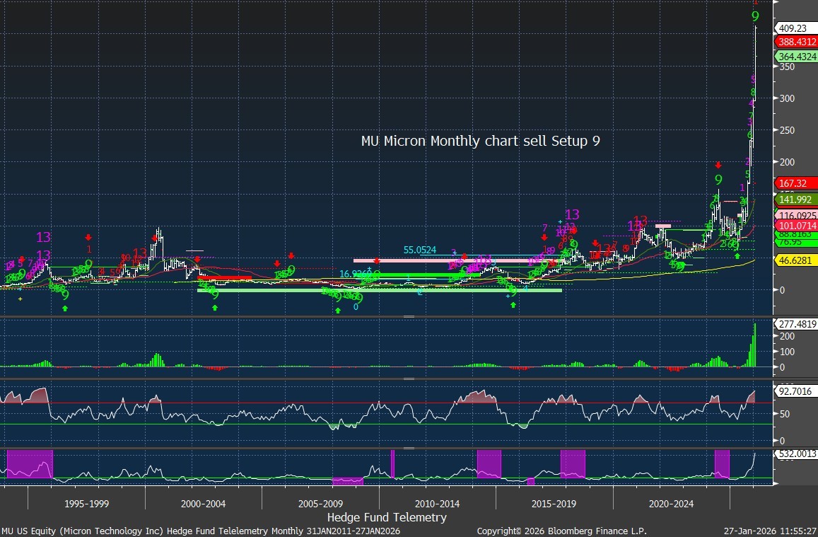 Nor is the market concerned about fatuous/feckless policy (erratic tariffs, absence of fiscal discipline et al), uncooperative and highly partisan politicians in Washington, D.C. (likely leading to a government shutdown in February), very expensive valuations, a equity risk premium that has become an equity risk discount, parabolic moves in precious metals, a breakout (to the upside) in other commodities (leading, in part, to sticky inflation), evidence of rising levels of speculation, investor complacency, a narrowing in the internals, rising JGB yields, the precarious state of AI capital spending vs. projected returns (on that investment) and a host of other headwinds (often mentioned in my Diary).