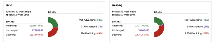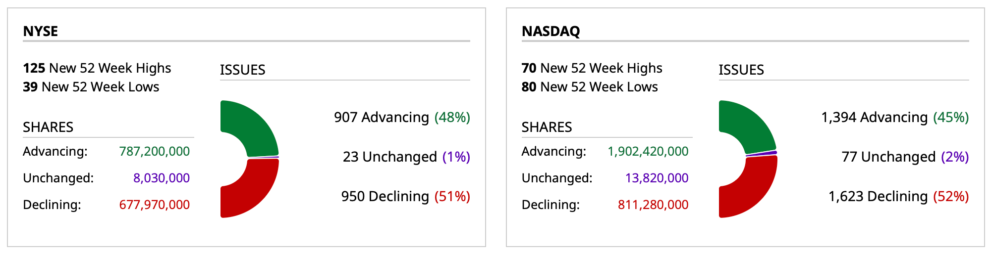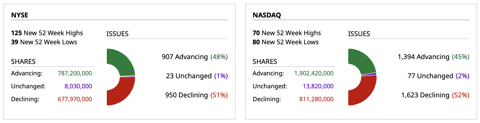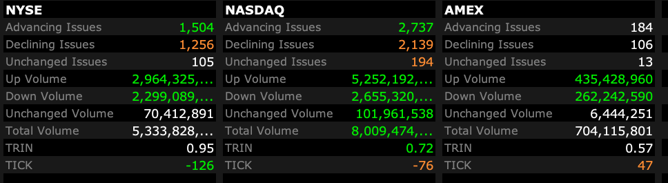 - NASDAQ volume 3% below its one-month average;