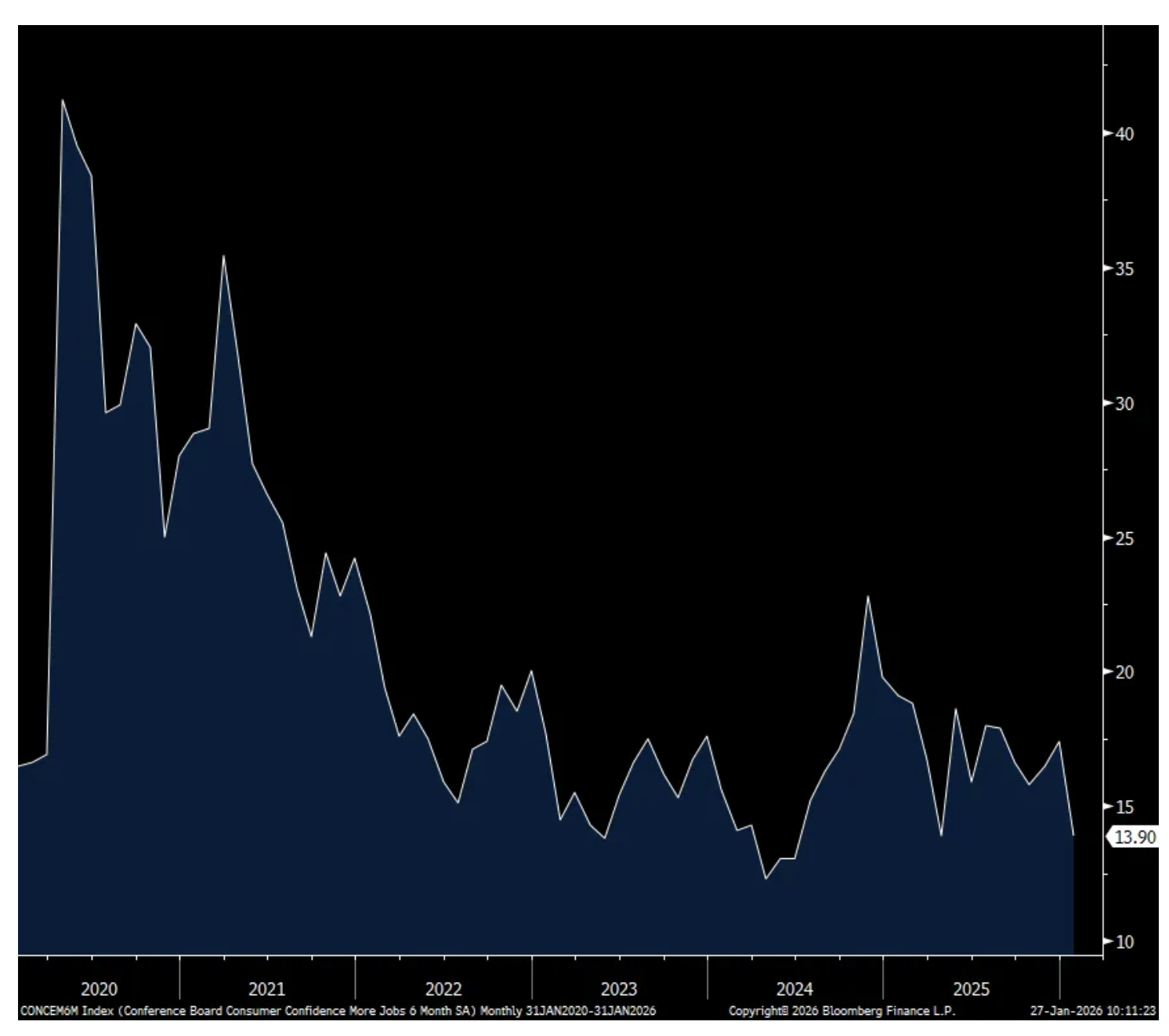 The bottom line from the Conference Board, “Consumers’ write-in responses on factors affecting the economy continued to skew towards pessimism. References to prices and inflation, oil and gas prices, and food and grocery prices remained elevated. Mentions of tariffs and trade, politics, and the labor market also rose in January, and references to health/insurance and war edged higher.”