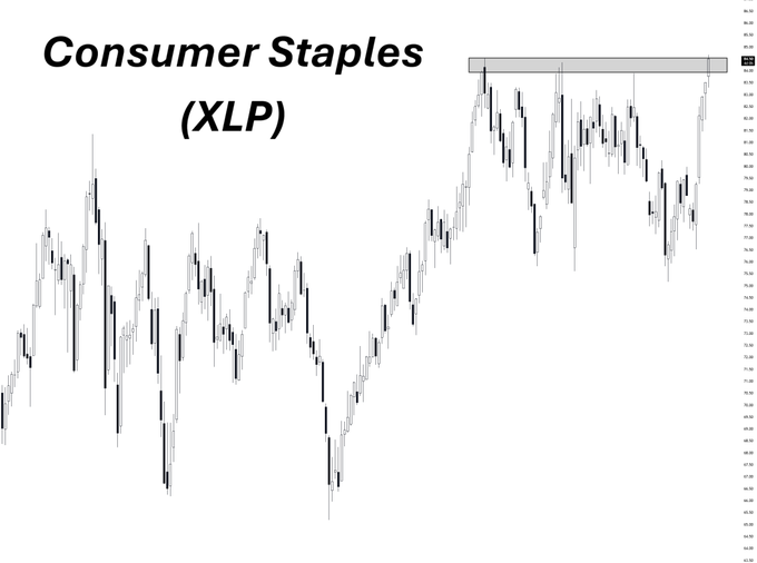 * Kiss of death? Technicians are only now recognizing the strength in consumer staples