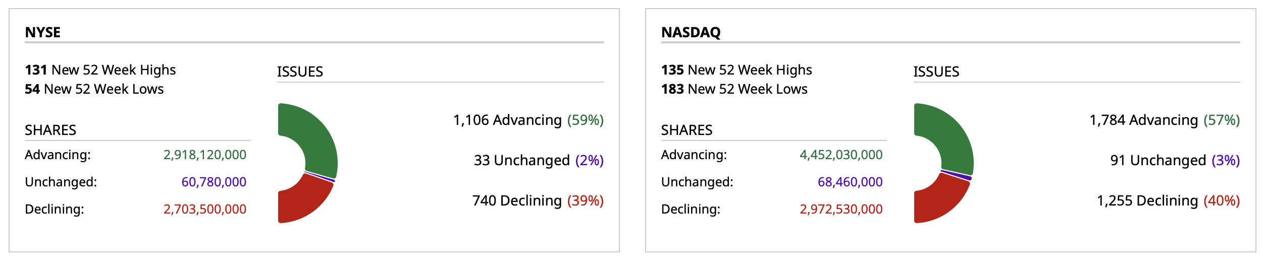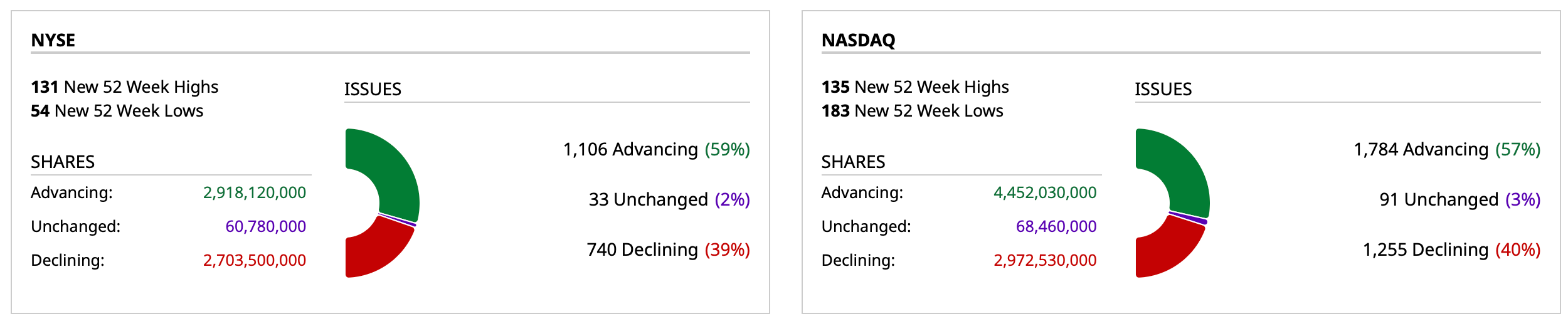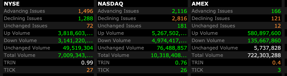 - NYSE volume 41% above its one-month average;
