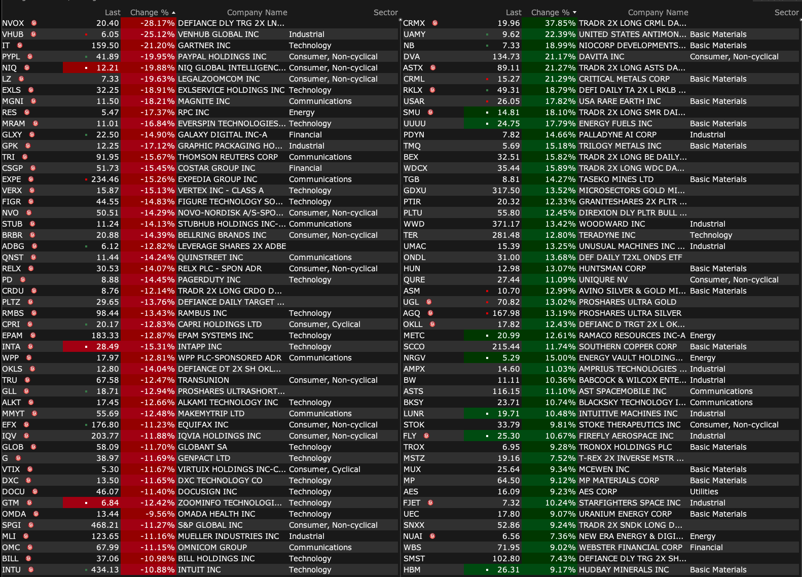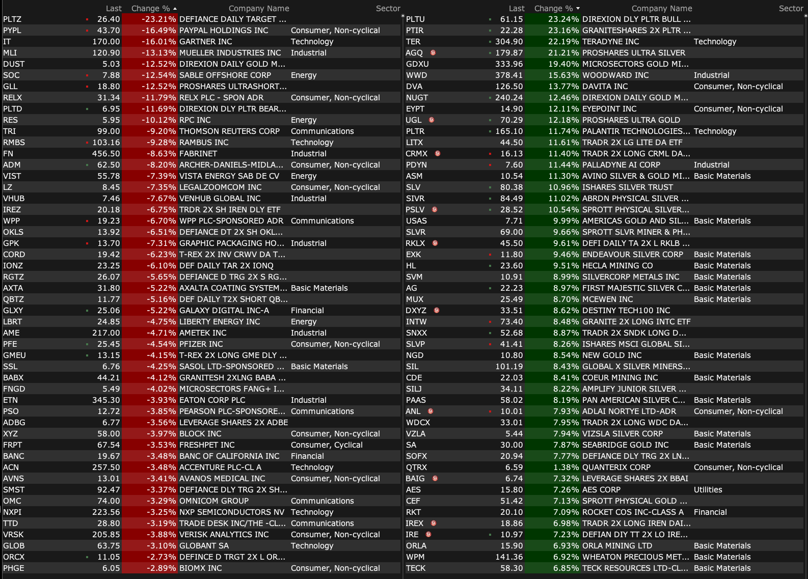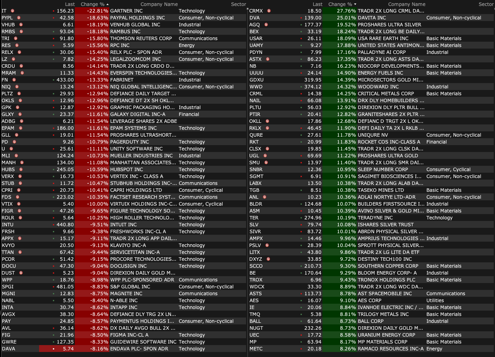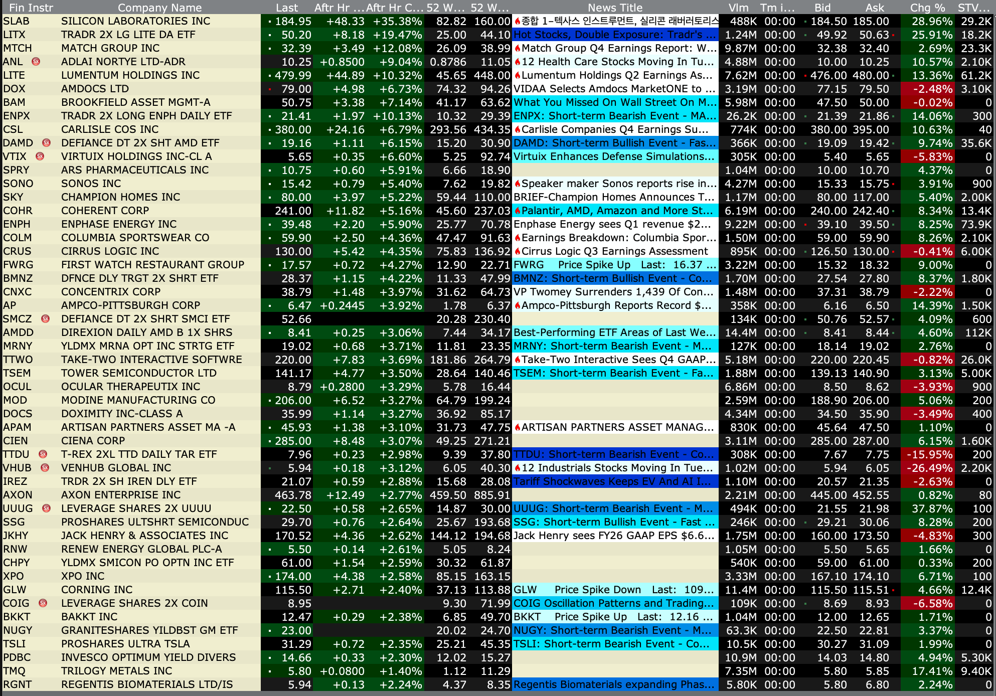 After-Hours Gainers and Decliners